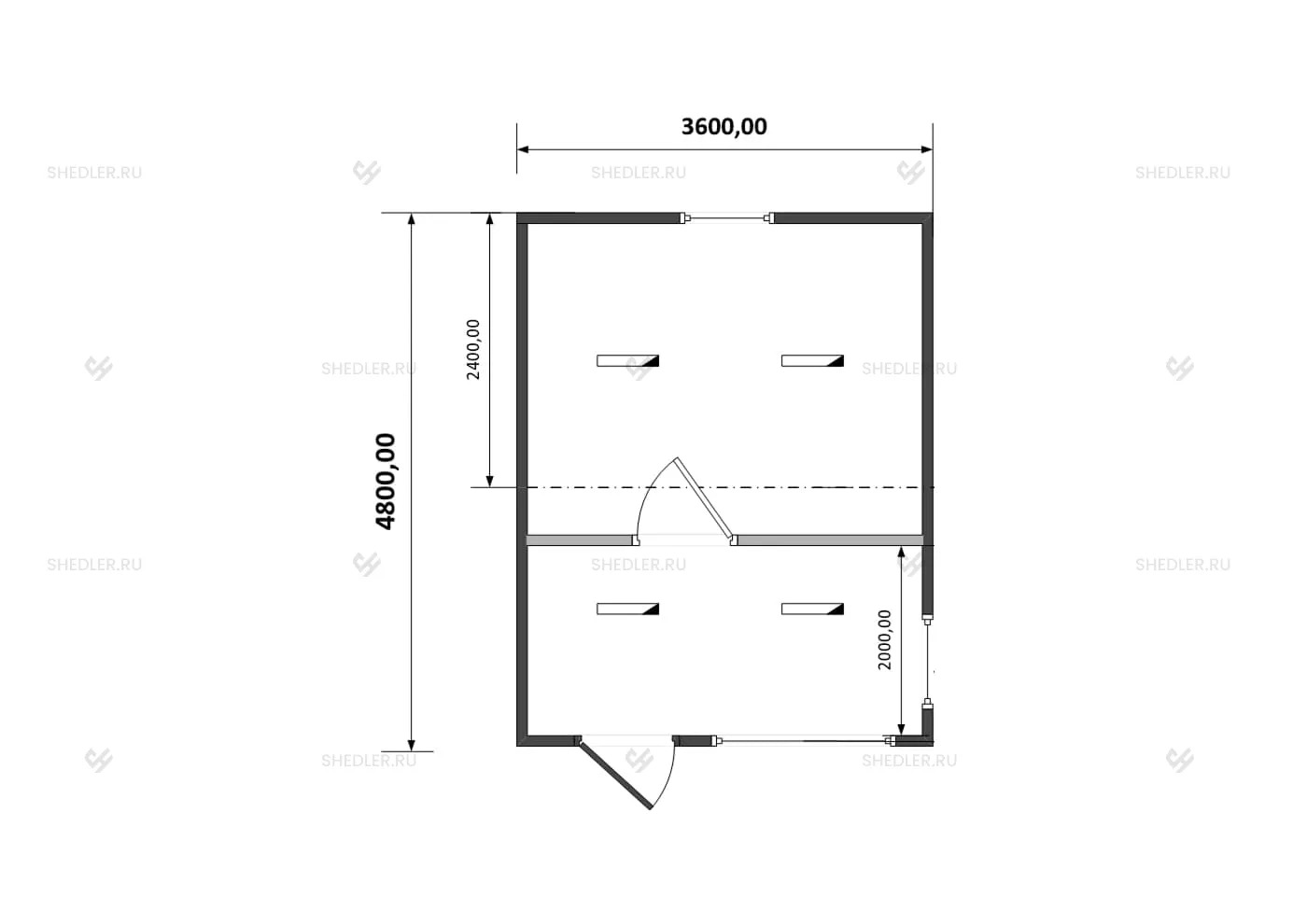 3,6 x 4,8 x 2,45 м