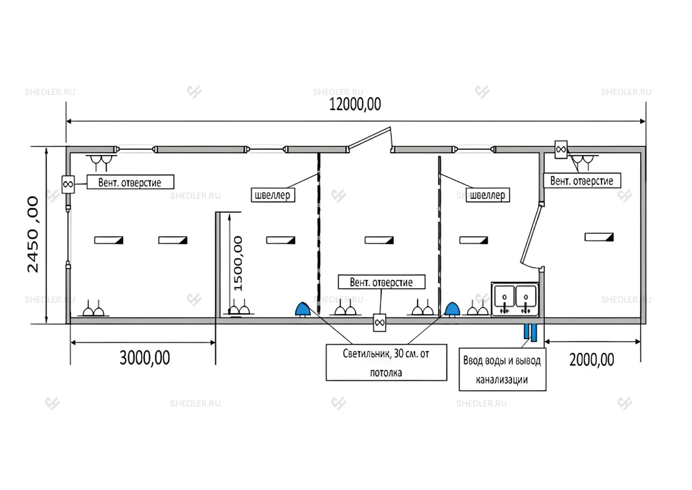 В ассортименте компании SHEDLER есть строительные блок контейнеры различных размеров и конфигураций. Мы предлагаем как готовые решения, так и контейнеры, спроектированные по индивидуальному заказу.