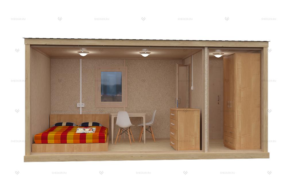 На макетах представлен стандартный комплект контейнеров, по вашему запросу мы можем укомплектовать контейнер техникой и мебелью.