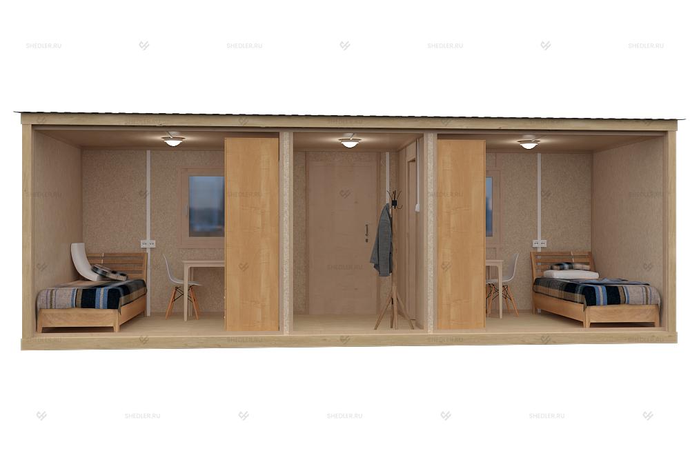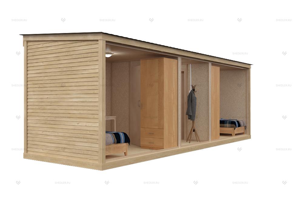 Строительная бытовка с деревянной отделкой Б-02 SHEDLER могут использоваться в для разных нужд: