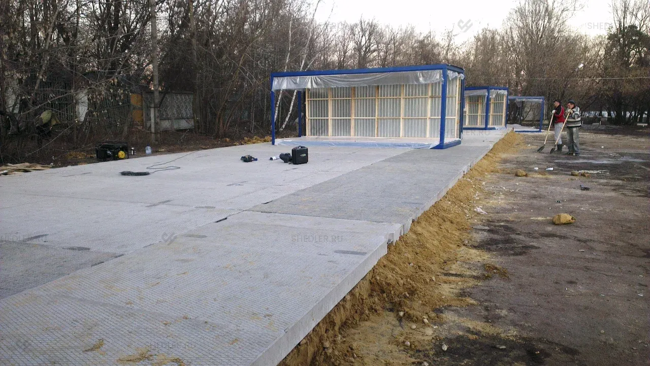 Бетонное основание подходит как для временных, так и для стационарных модульных зданий