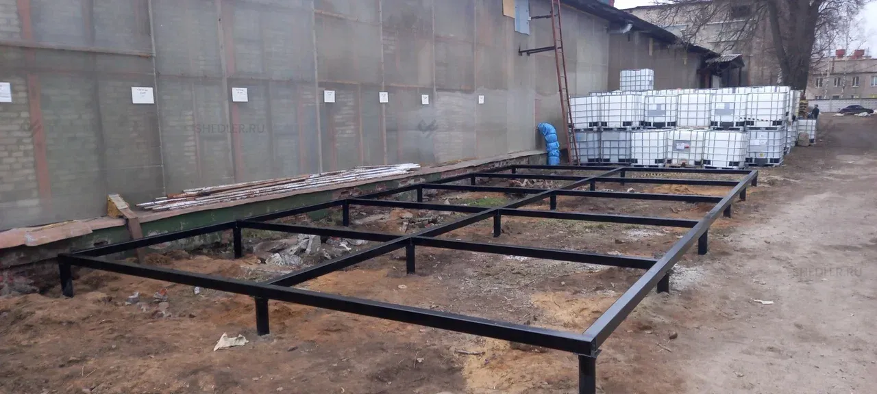 Отличный выбор для легких построек — бытовок, контейнеров, небольших модульных зданий. Не требует выемки грунта и может быть смонтирован даже на сложных участках.