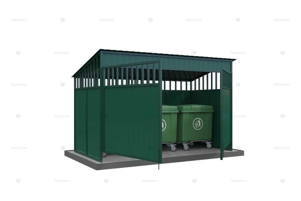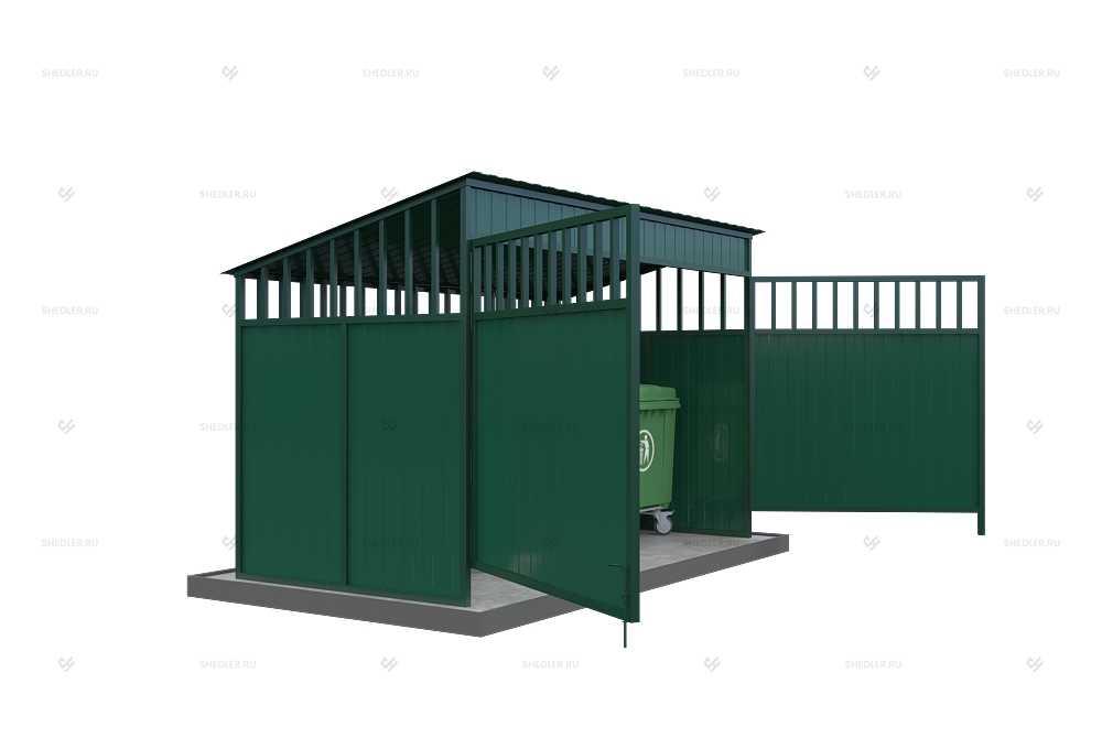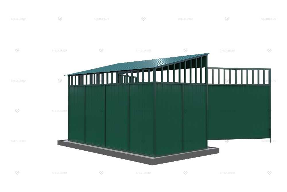 Контейнерная площадка КПМ-02 SHEDLER – это ограждение закрытого типа с односкатной крышей и двухстворчатыми воротами, предназначенное для размещения 3 мусорных контейнеров. Конструкция предотвращает распространение неприятного запаха (между кровлей и стенами предусмотрены вентиляционные отверстия), ограничивает доступ животных к мусору, формирует условия для его удобного вывоза и сортировки. Модель КПМ-02 SHEDLER может быть использована всюду, где для сбора мусора используется не более 3 стандартных контейнеров – небольшие многоквартирные дома, дачные поселки, гаражные кооперативы и коттеджные поселки, сельские поселения.