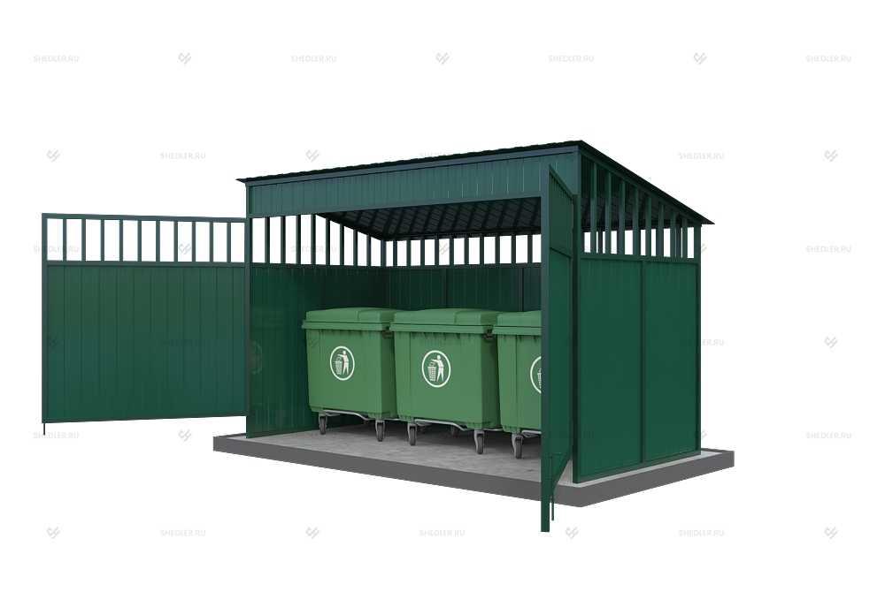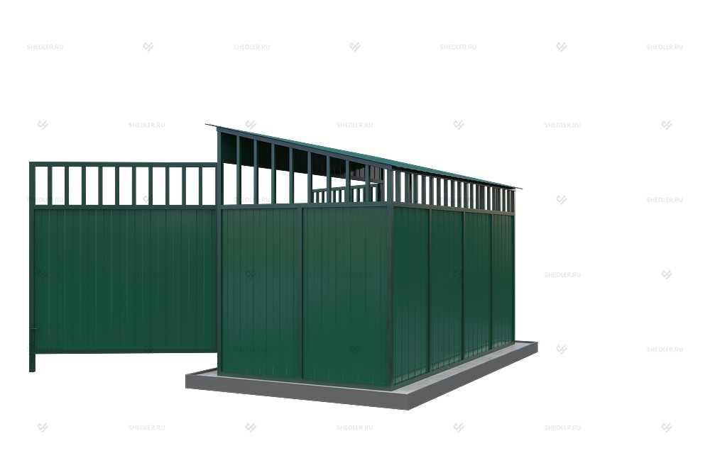 Контейнерная площадка КПМ-02 из профлиста с воротами на 3 мусорных контейнера