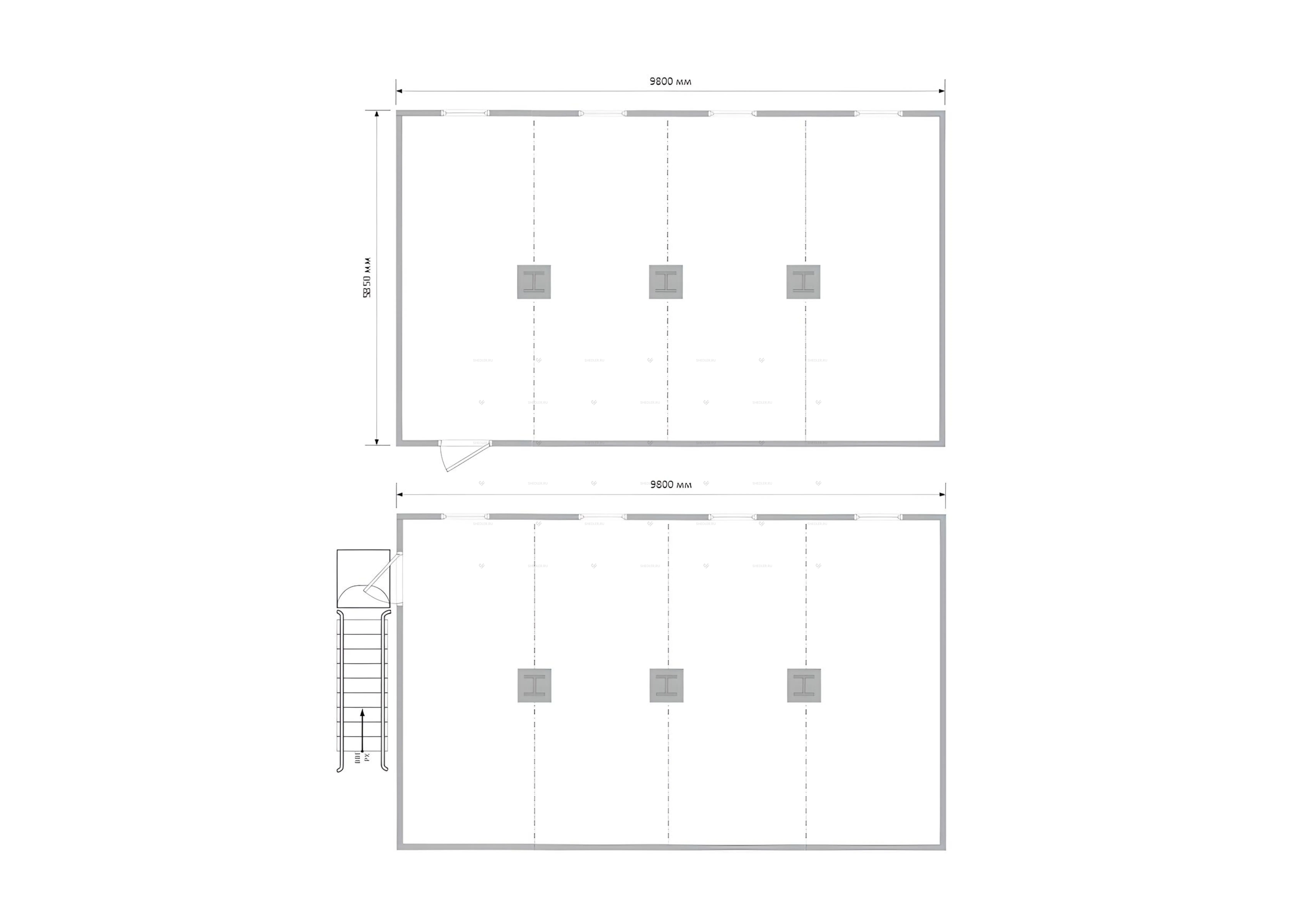 Внешняя отделка МЗ-19 из оцинкованного профлиста С8, внутри обшивка из ДВП. 8 окон, межкомнатные двери. Дополнительно внутри можно установить кондиционеры, обогреватели, мебель, столы, стулья и т.д. все это имеется в наличии у SHEDLER.