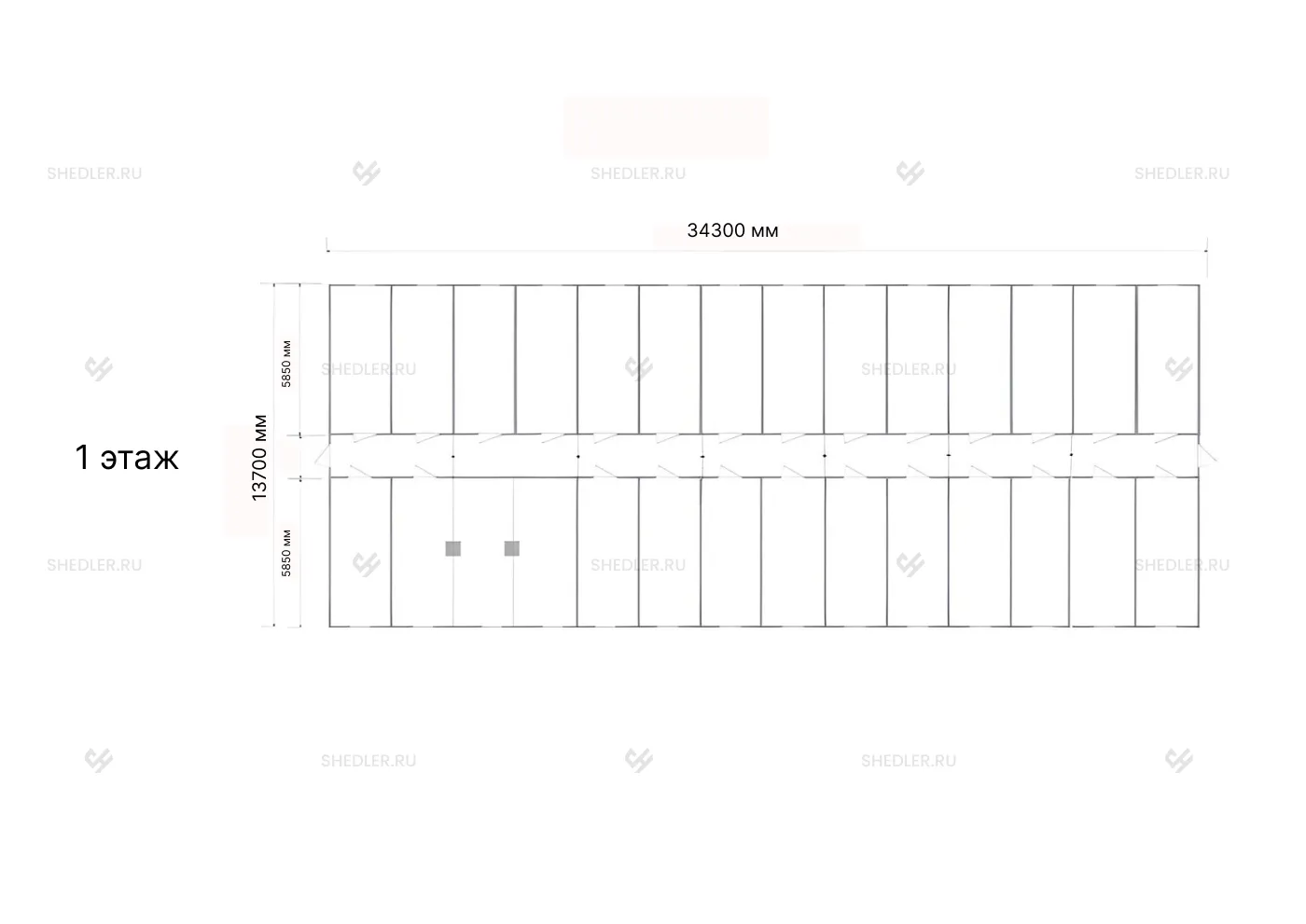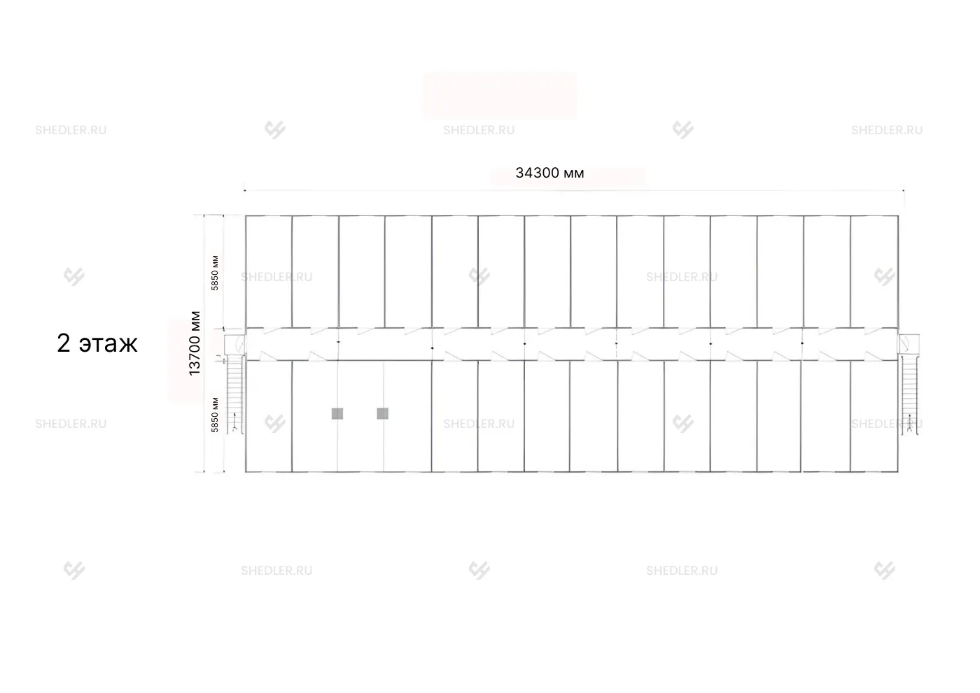 Здание может быть использовано как отель, строительный городок, быстровозводимое общежитие, вахтовый поселок. На второй этаж ведут две наружные металлические лестницы. Между комнатами расположен коридор. В каждой комнате имеется окно и отдельный вход. Дополнительно SHEDLER может предоставить кровати, диваны, постельное белье, столы, стулья для комфортного проживания, а также установить кондиционеры.