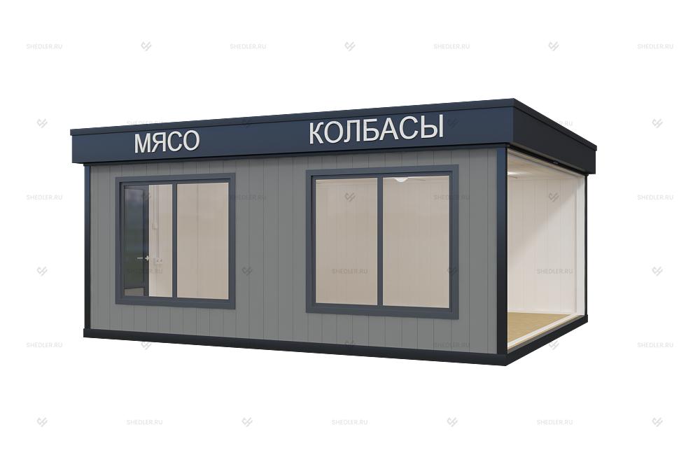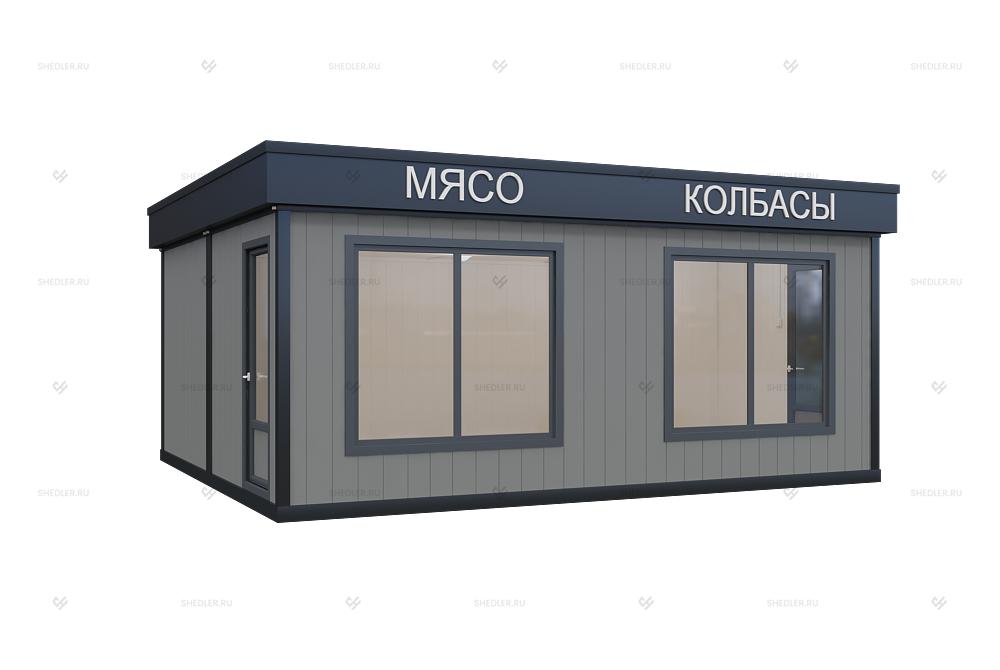 | Входная дверь (2шт.) | ПВХ с остеклением (без торгового окна, остекление на одном уровне с окнами) (900 x 2100) |