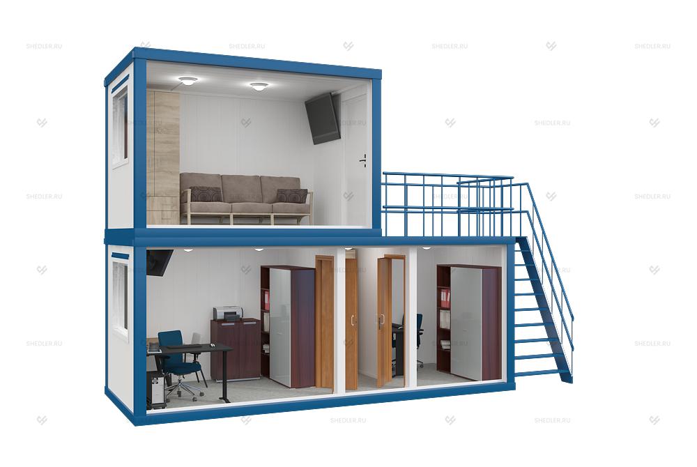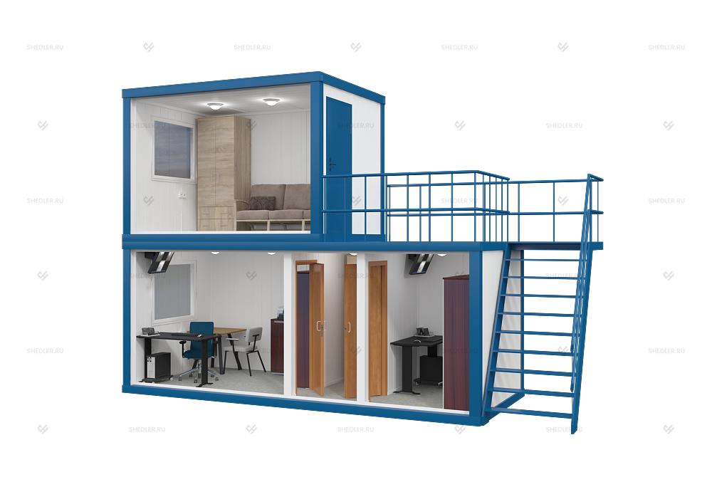 Контрольно-пропускной пункт ПБК-32 SHEDLER – это двухэтажное сооружение из 2 блок-контейнеров, предназначенное для организации системы безопасности на промышленных, строительных и логистических объектах, а также в военных частях и других локациях.