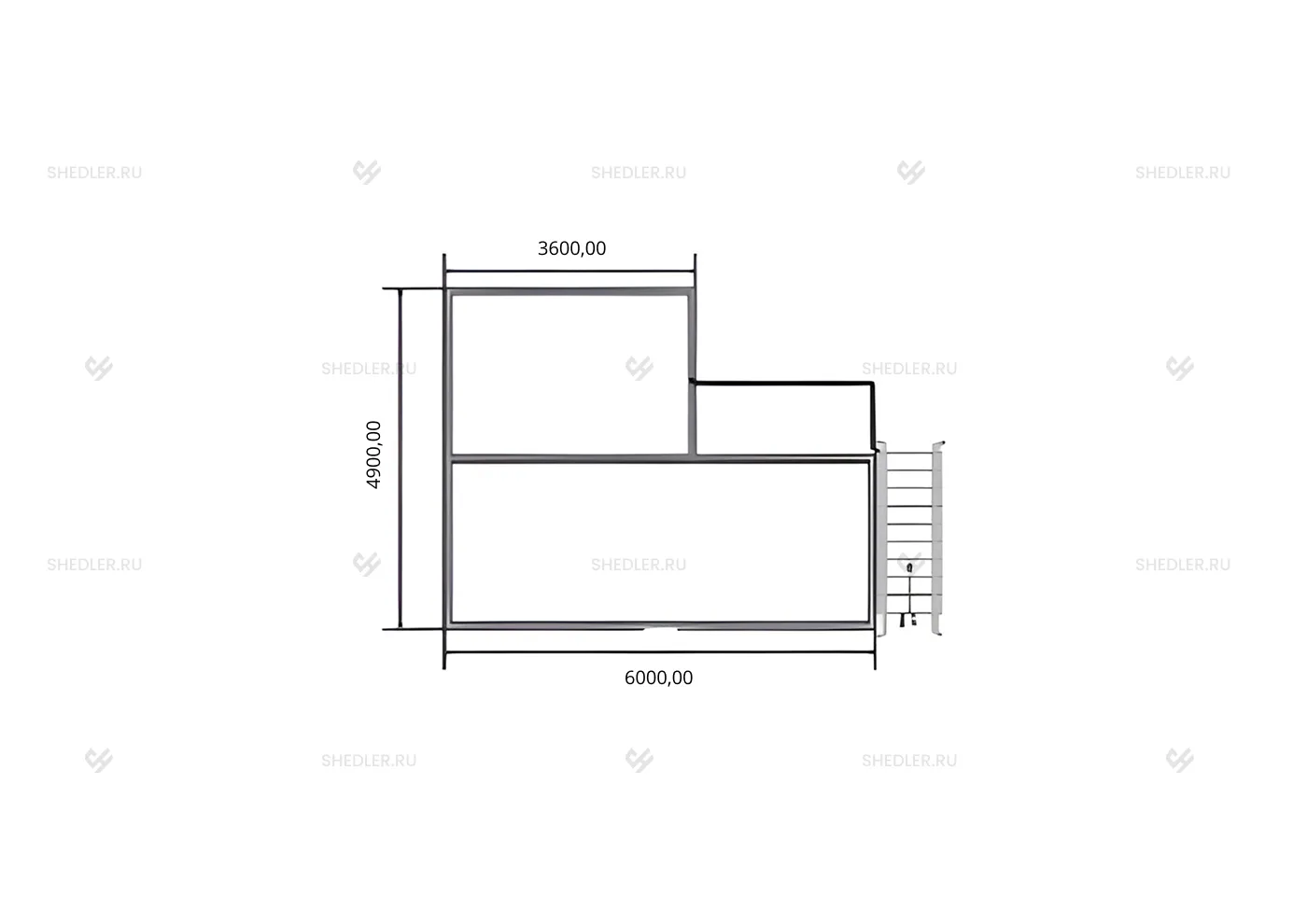 | Лестница | На второй этаж с площадкой 1,25 x 1,25 м (чечевица) с перилами по периметру из профтрубы, ступеньки из просечённого листа |