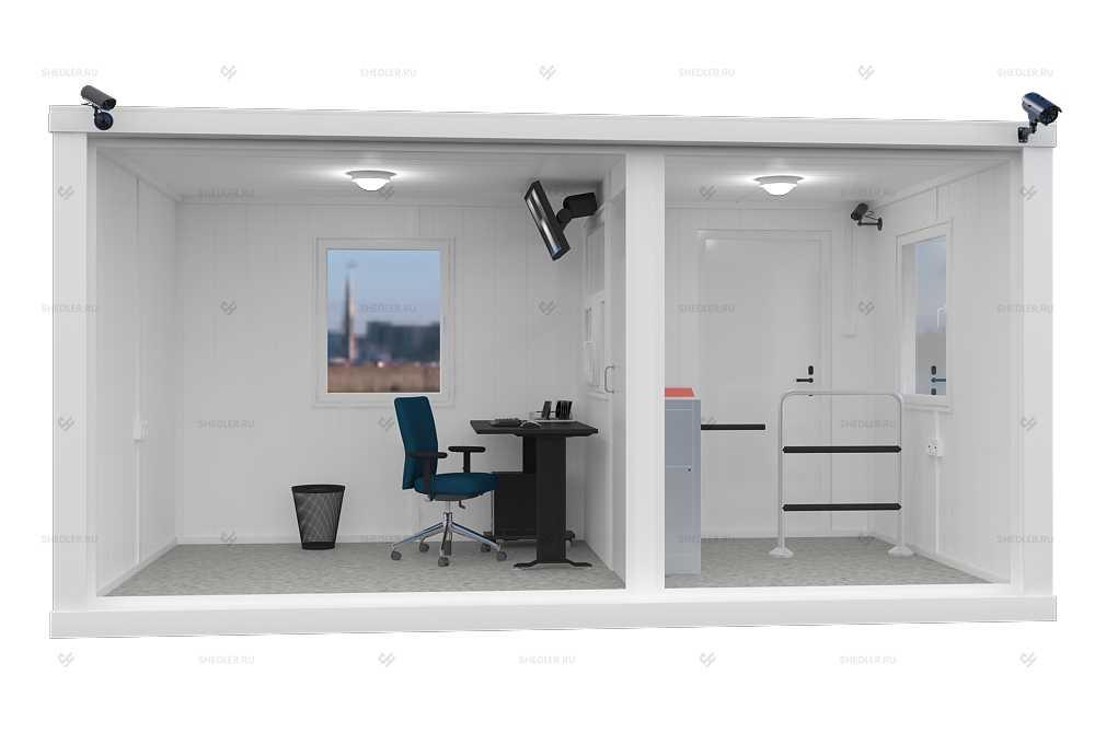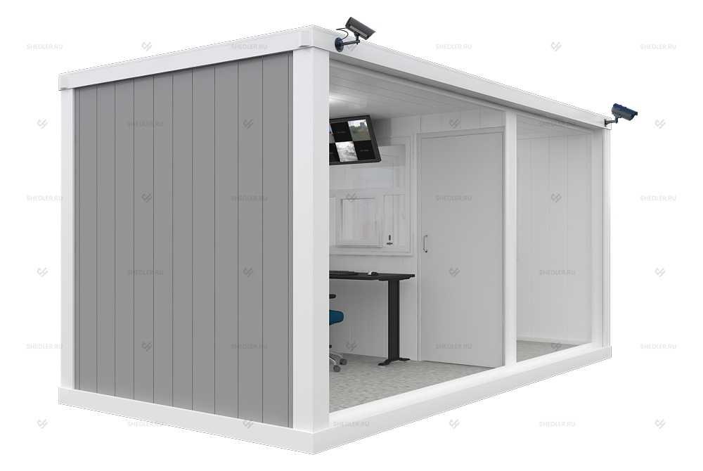 Модульный пост охраны ПБК-24 SHEDLER – это быстровозводимое помещение, которое служит укрытием для сотрудников службы безопасности, обеспечивает условия для контроля доступа на закрытую территорию и наблюдения за вверенным пространством. Модуль используется на режимных объектах и закрытых частных территориях – на автопаркингах, промышленных предприятиях, садовых и коттеджных товариществах.