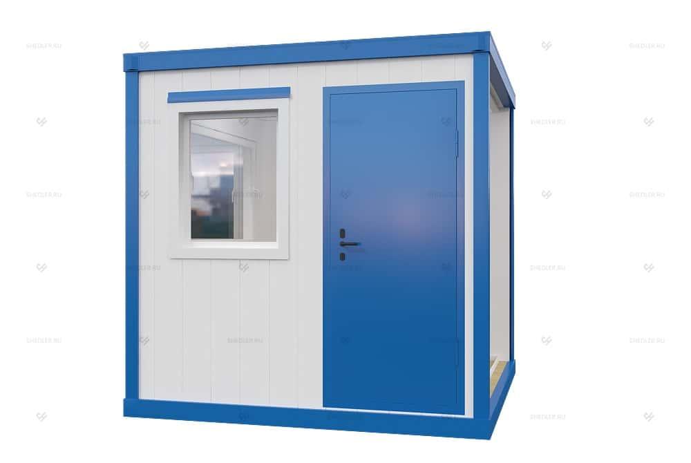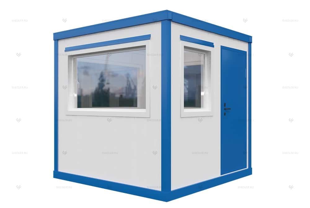 Пост охраны БК-017 СП имеет поворотное откидное окно из ПВХ и оснащен отдельным входом. Вы также можете расширить функциональность поста охраны, установив москитную сетку, жалюзи или решетку на окно.