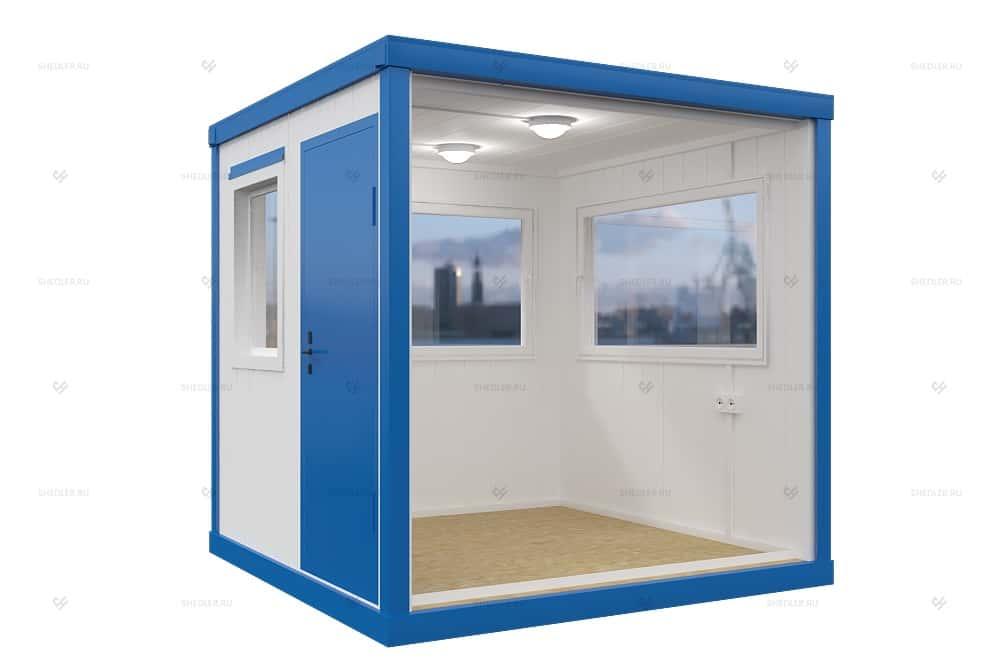 Пост охраны БК-017 СП сделан из сэндвич-панелей и имеет размеры 2,45 х 2,45 х 2,45 м (ДхШхВ). Общая площадь поста охраны составляет 6 кв.м. Эта металлическая конструкция обшивается специальными сэндвич-панелями, которые обеспечивают хорошую изоляцию и прочность.