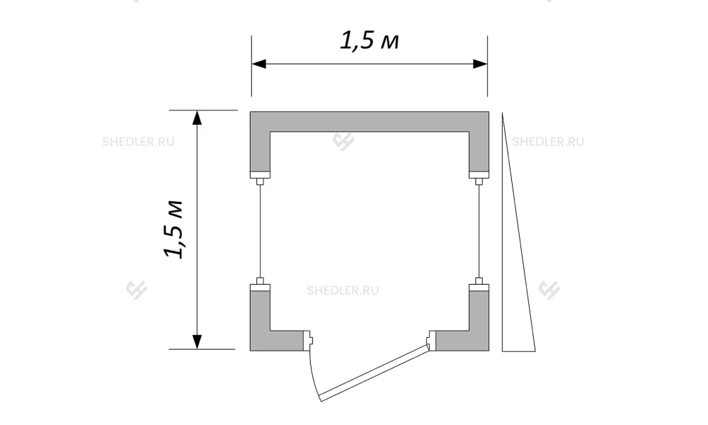| Крыша | Односкатная, высота конька 15 см, сварная из стального листа 0,7 мм, покрашена в цвет каркаса, сверху настил из профлиста С8, вылет по 30 см со всех сторон |