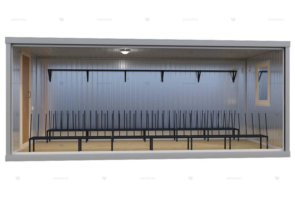 Быстровозводимый модуль размером 5,85 х 2,45 х 2,45 м и площадью 14,33 кв.м предназначен для приведения в порядок рабочей одежды. Одноэтажная конструкция легко устанавливается, для монтажа не потребуются согласования. Блок-контейнер сушилка БКС-02 SHEDLER легко переносит любые погодные условия, его можно эксплуатировать на юге страны, в средней полосе и даже на севере.