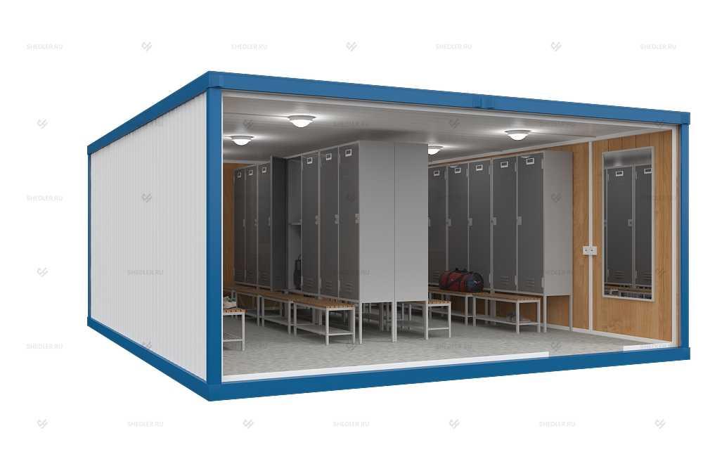 Модульная раздевалка МД-03 от SHEDLER - это одноэтажное помещение, состоящее из 2 блок-контейнеров с габаритами 5,85 х 4,9 х 2,45 м и площадью 28,66 кв.м, предназначенное для изменения формы одежды. Раздевалка устанавливается в течение 1 дня, может использоваться на промышленных предприятиях, социальных, спортивных и коммерческих объектах. Для установки не нужно получать разрешение, а также строение не нуждается в фундаменте, что делает конструкцию особенно актуальной в условиях, когда раздевалка нужна срочно и на определенный период.
