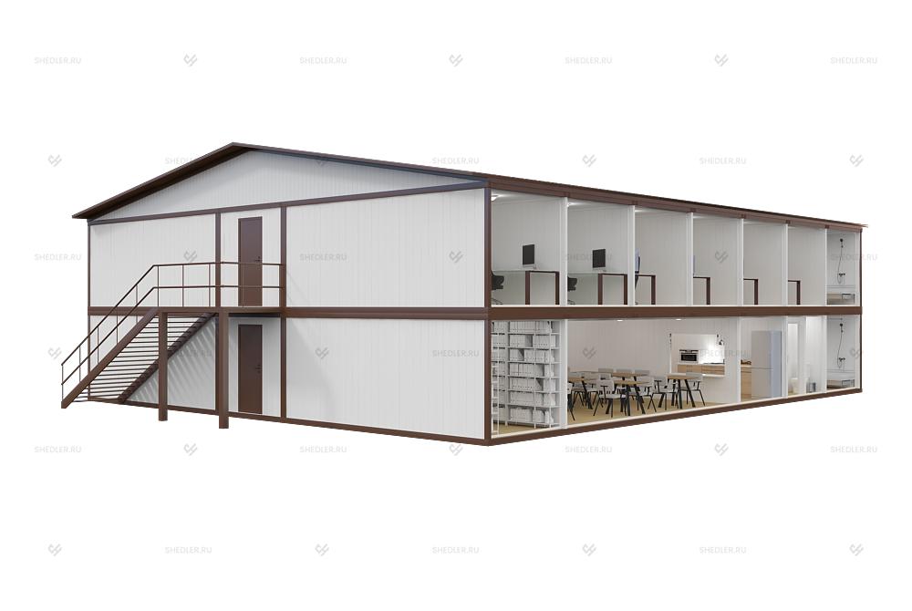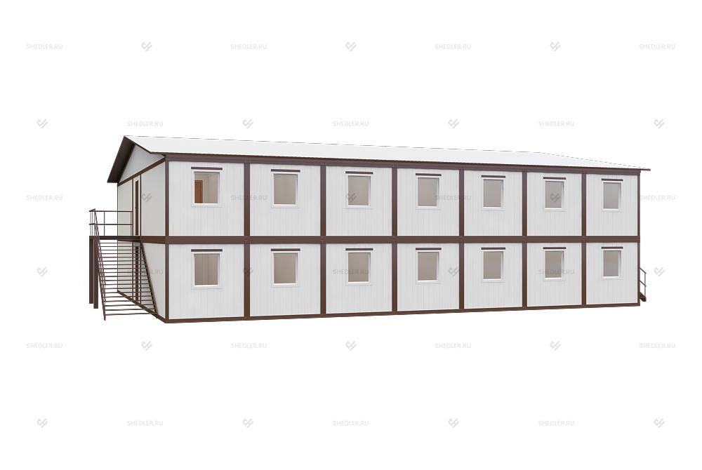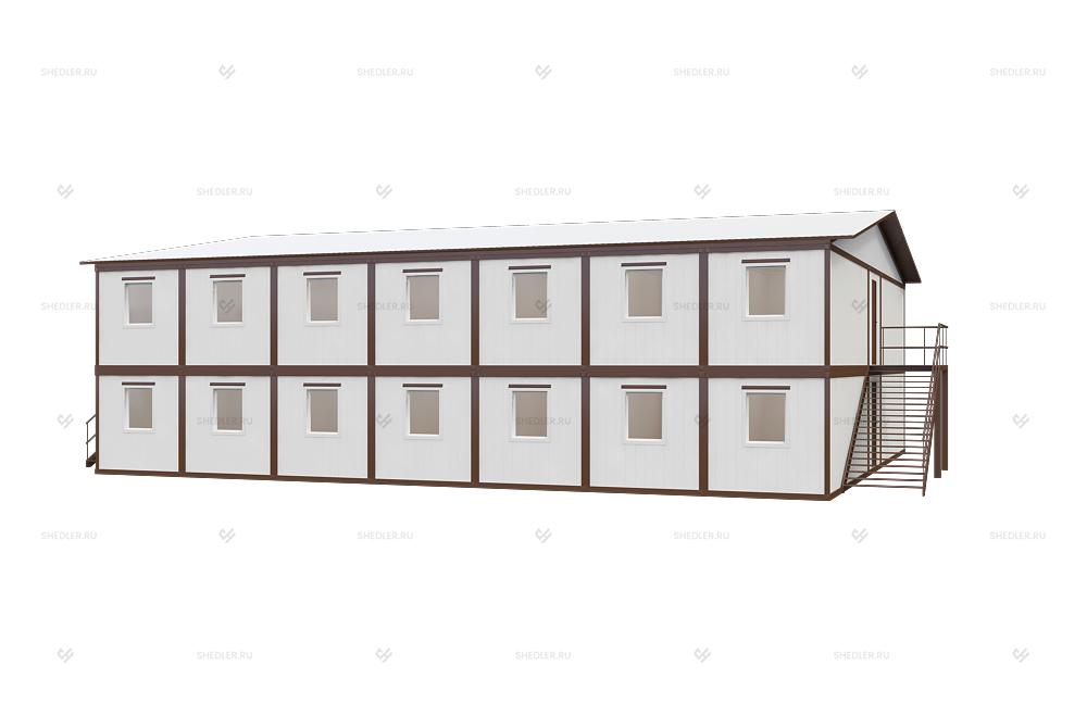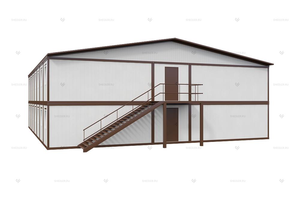 Двухэтажное модульное здание БМ-31 СП с двускатной крышей из 36 блок-контейнеров