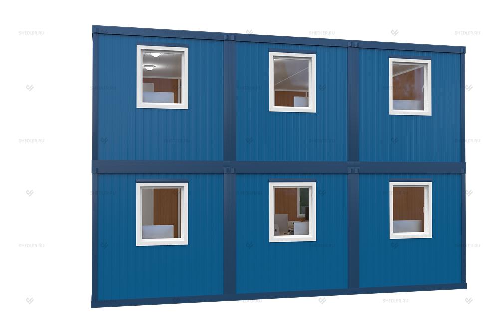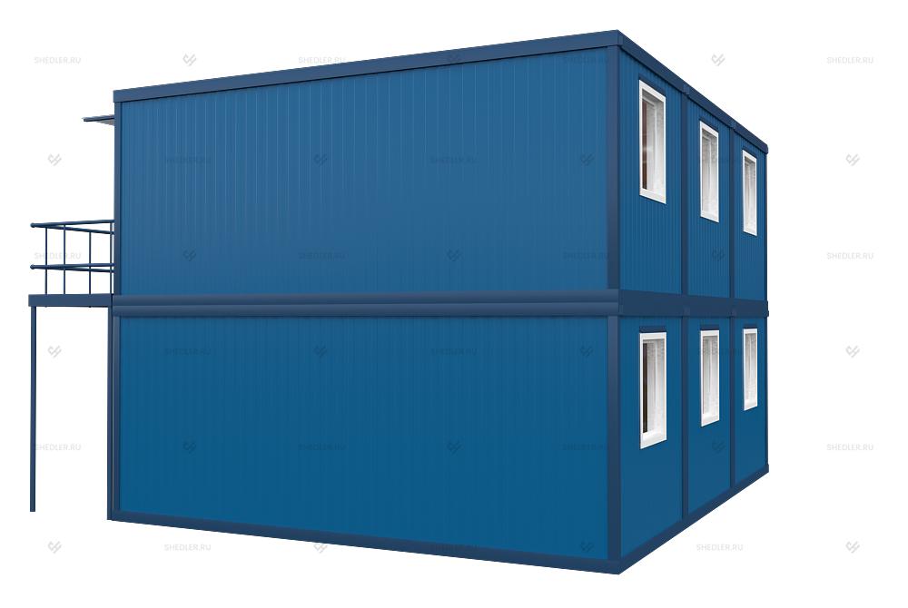 Двухэтажное модульное здание МД-73 с двускатной крышей из 6 блок-контейнеров