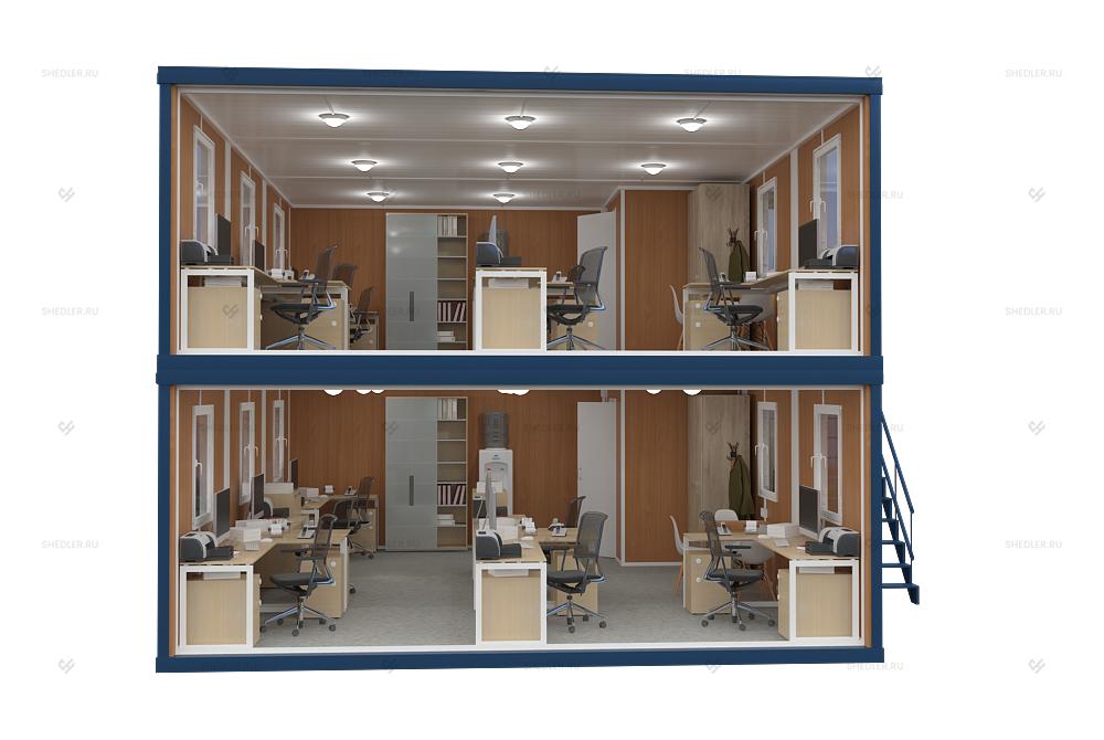 На макетах представлен стандартный комплект контейнеров, по вашему запросу мы можем укомплектовать контейнер техникой и мебелью.