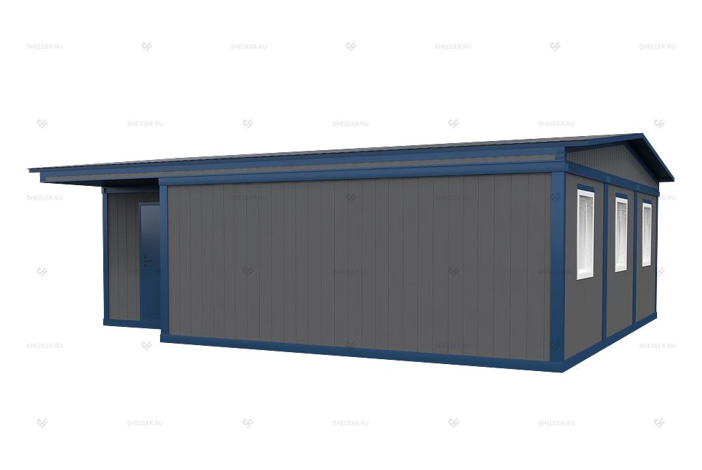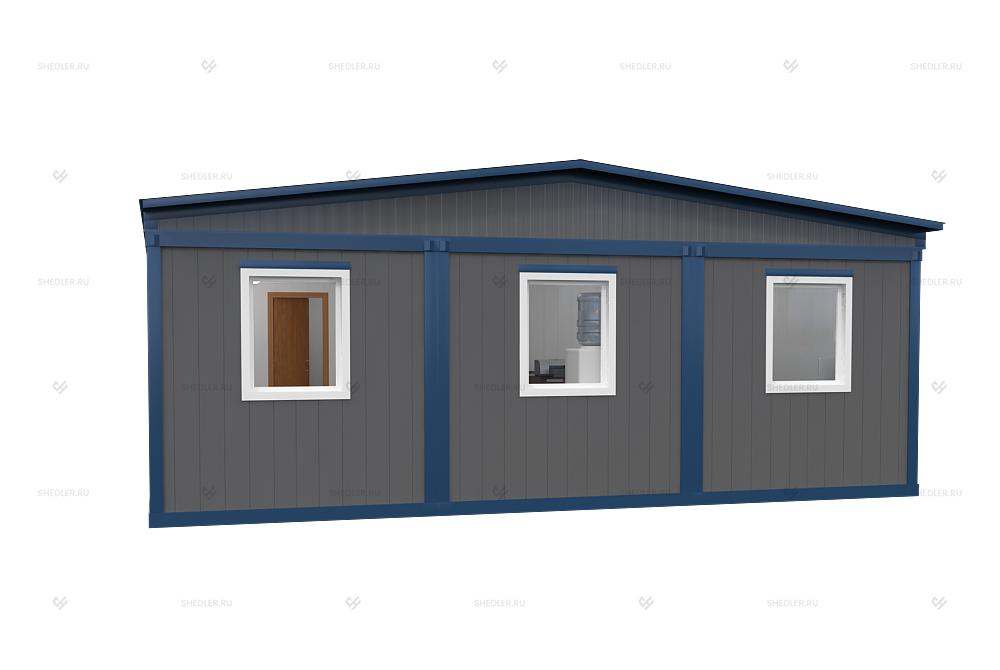 Модульное здание БМ-19 СП от Шедлер монтируется сразу на грунт, для прочности можно установить бетонные или деревянные блоки. На объект конструкция доставляется частями – блок-модули соединяются воедино и монтируется общая двускатная крыша. На установку потребуется всего 1-2 дня.
