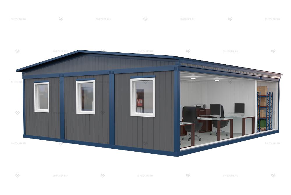 Модульное здание БМ-19 СП с двускатной крышей из 4 блок-контейнеров