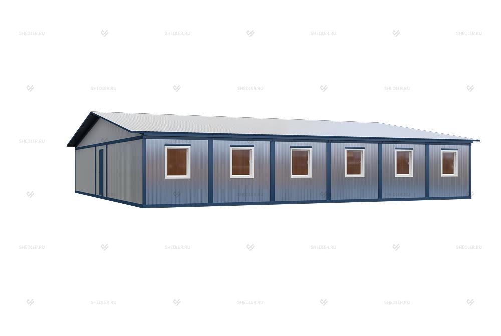 Модульное здание МД-37 с двускатной крышей из 15 блок-контейнеров
