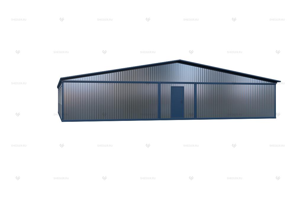 Двускатная кровля состоит из мауэрлата, стропил, конька, стоек, опор и других элементов. Стропильная система может быть двух видов – висячей и наслонной. В качестве кровельного материала может выступать профлист С8, который крепится специальным крепежом к обрешётке. Угол наклона может быть 10 или 12 градусов, в зависимости от ширины конструкции. Используется для модульных зданий различного назначения: офис, штаб строительства, общежитие и т.д.