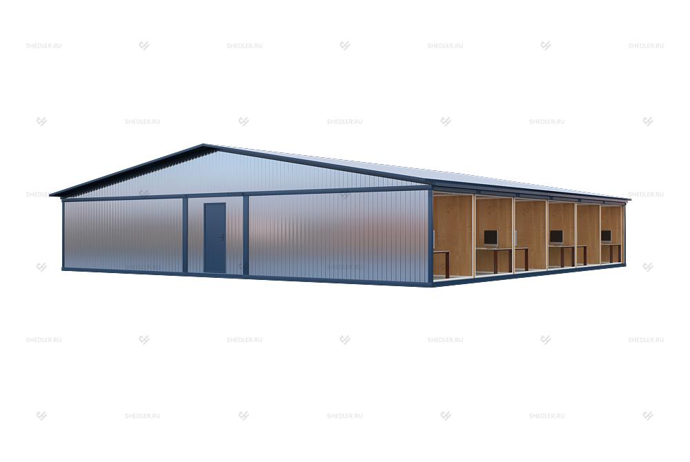 Сооружение легко собирается и разбирается, не доставляет хлопот в обслуживании. Этому способствует металлокаркас, собранный из швеллера 120 мм и уголка 90 мм, двускатная крыша из оцинкованного профлиста и фасад из этого же материала. Минимизации теплопотерь способствует утепление стен, пола и потолка базальтовой ватой «URSA» 100мм, которая защищена от промокания полипропиленовой пленкой 40 мкм.