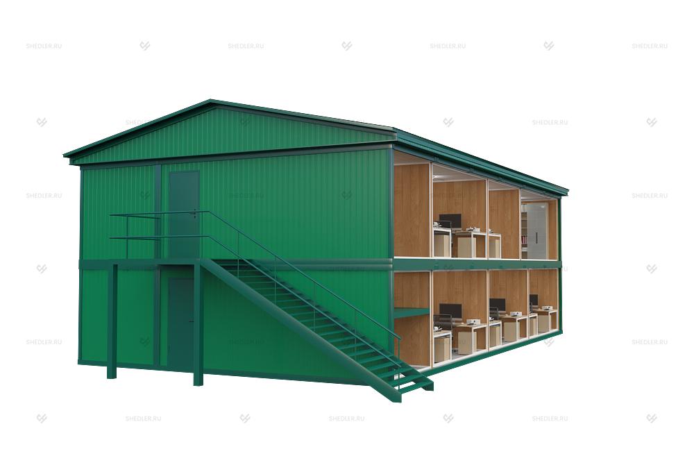 Модульное здание МД-38 с двускатной крышей из 19 блок-контейнеров