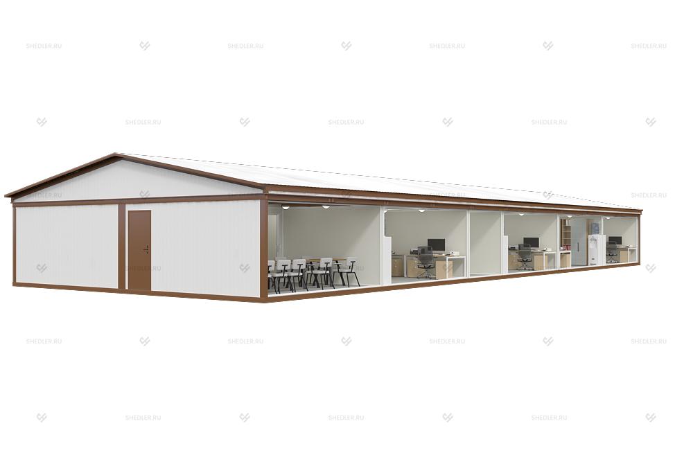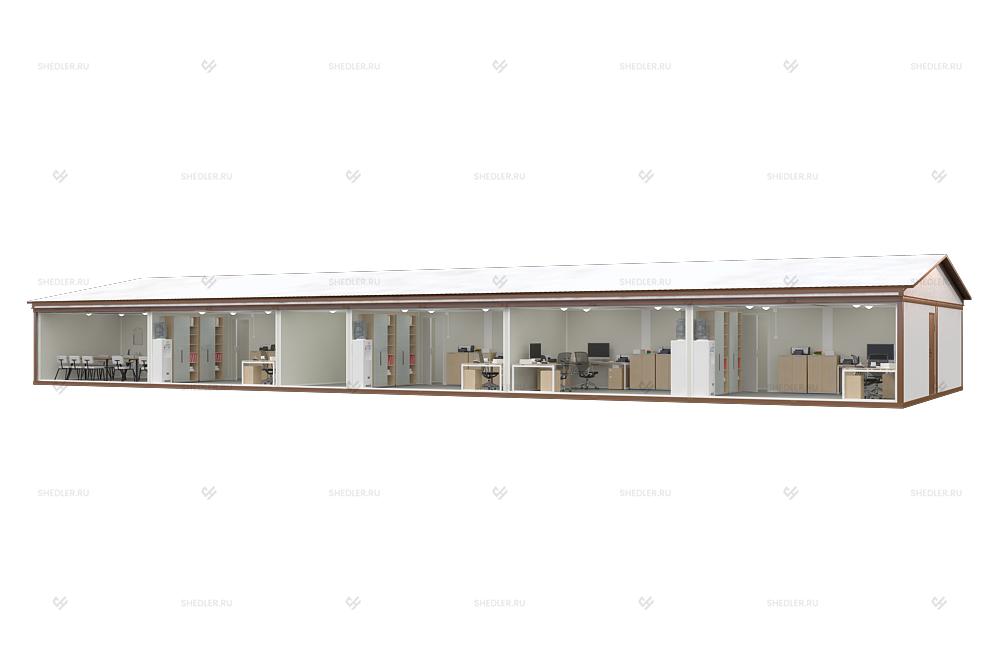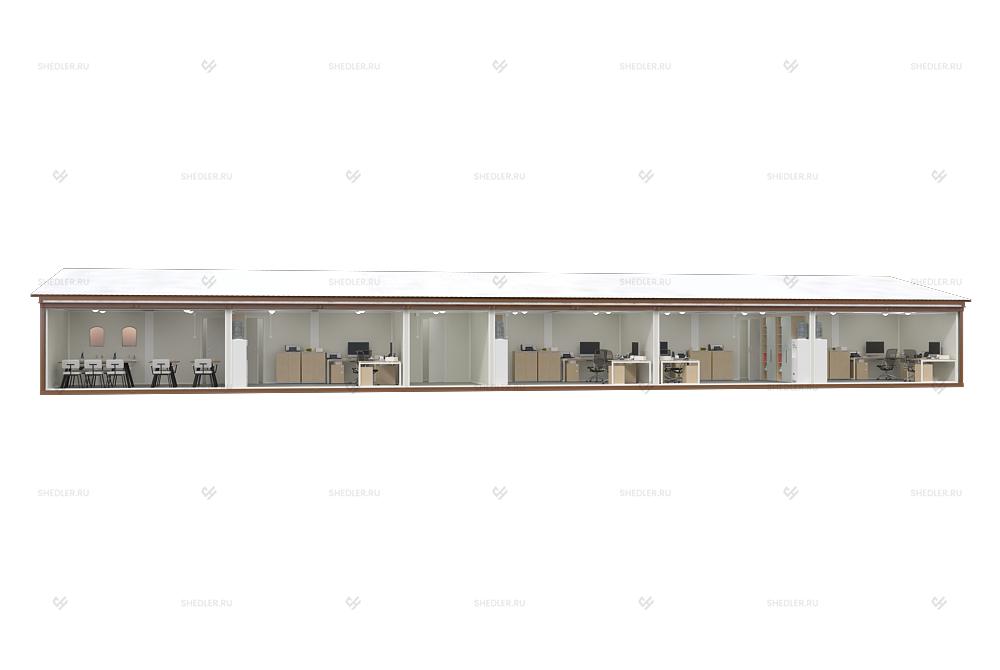 Модульное здание МД-50 с двускатной крышей из 22 блок-контейнеров