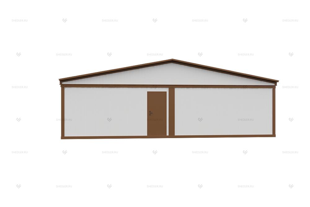 Двускатная кровля состоит из мауэрлата, стропил, конька, стоек, опор и других элементов. Стропильная система может быть двух видов – висячей и наслонной. В качестве кровельного материала может выступать профлист С8, который крепится специальным крепежом к обрешётке. Угол наклона может быть 10 или 12 градусов, в зависимости от ширины конструкции. Используется для модульных зданий различного назначения: офис, штаб строительства, общежитие и т.д.
