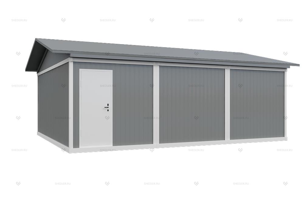 Фасад МЗ-16 Шедлер выполняет огораживающие функции, он собран из цветного профлиста C8, окрашенного в оттенок RAL 7004. Экстерьер здания также формирует металлическая утепленная дверь российского производства на входе с декоративной облицовкой белым МДФ, ручкой и врезным замком. На подходе к ней смонтированы ступени из рифленого листа.