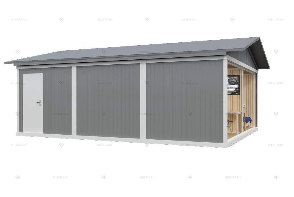 Блок Хаус – это имитация деревянной отделки фасада. При этом сам материал используется натуральный из массива натурального дерева, просто применяется не кругляк, а только завальцованная доска. В качестве древесины может быть сосна, кедр или лиственница. Материал обрабатывают специальными средствами, чтобы он не был подвержен гниению, воспламенению и вредителями. Блок Хаус прочный и эстетичный материал, способный придать гаражу или бытовке привлекательный внешний вид. Кроме того, древесина выступает в роли естественного утеплителя, сохраняя тепло внутри помещения. Отделка возможна как снаружи, так и изнутри.