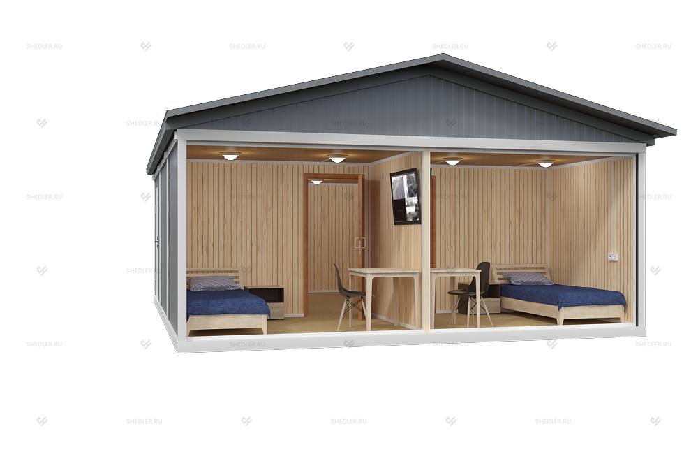 Модульное здание МЗ-16 из 3 блок-контейнеров с двускатной крышей