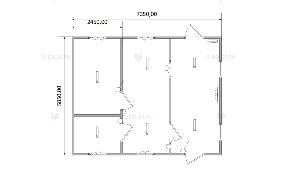 | Окно (7 шт.) | Деревянное с двойным остеклением 0,75 x 0,9 м |