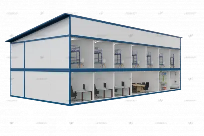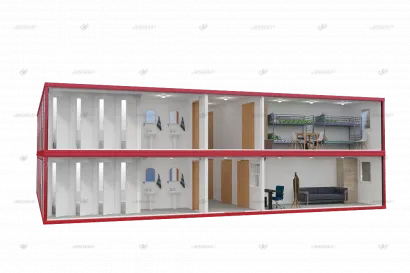 К этому перечню можно добавить санитарно-технические помещения (душевые, туалеты), хотя они чаще всего встроены в вышеперечисленные объекты. В зависимости от количества людей модульные строительные городки состоят из зданий различной этажности (высокая прочность блок-контейнеров SHEDLER позволяет монтировать быстровозводимые здания высотой до 3 этажей).