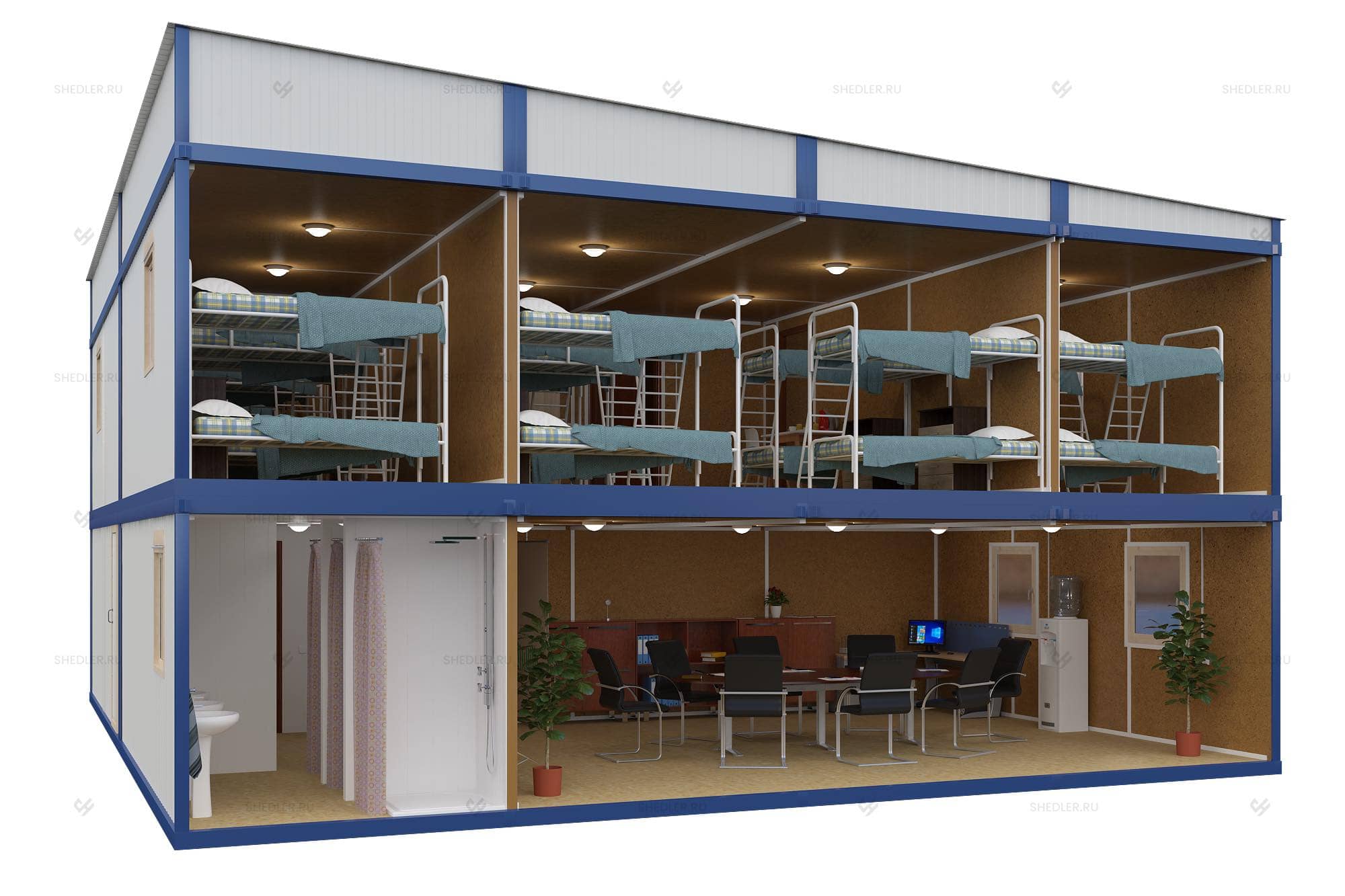 Компания SHEDLER специализируется на производстве модульных вахтовых поселков. Такие здания удобны и практичны, а также доступны для предпринимателей. Их можно разместить как на базе отдыха, так и на производстве или на территории, где планируется проживание сотрудников. Сооружение будет расположено рядом с местом их работы, что позволит сократить время на дорогу. Вместо этого рабочие смогут отдохнуть в комфортабельных помещениях, где созданы все условия для проживания.