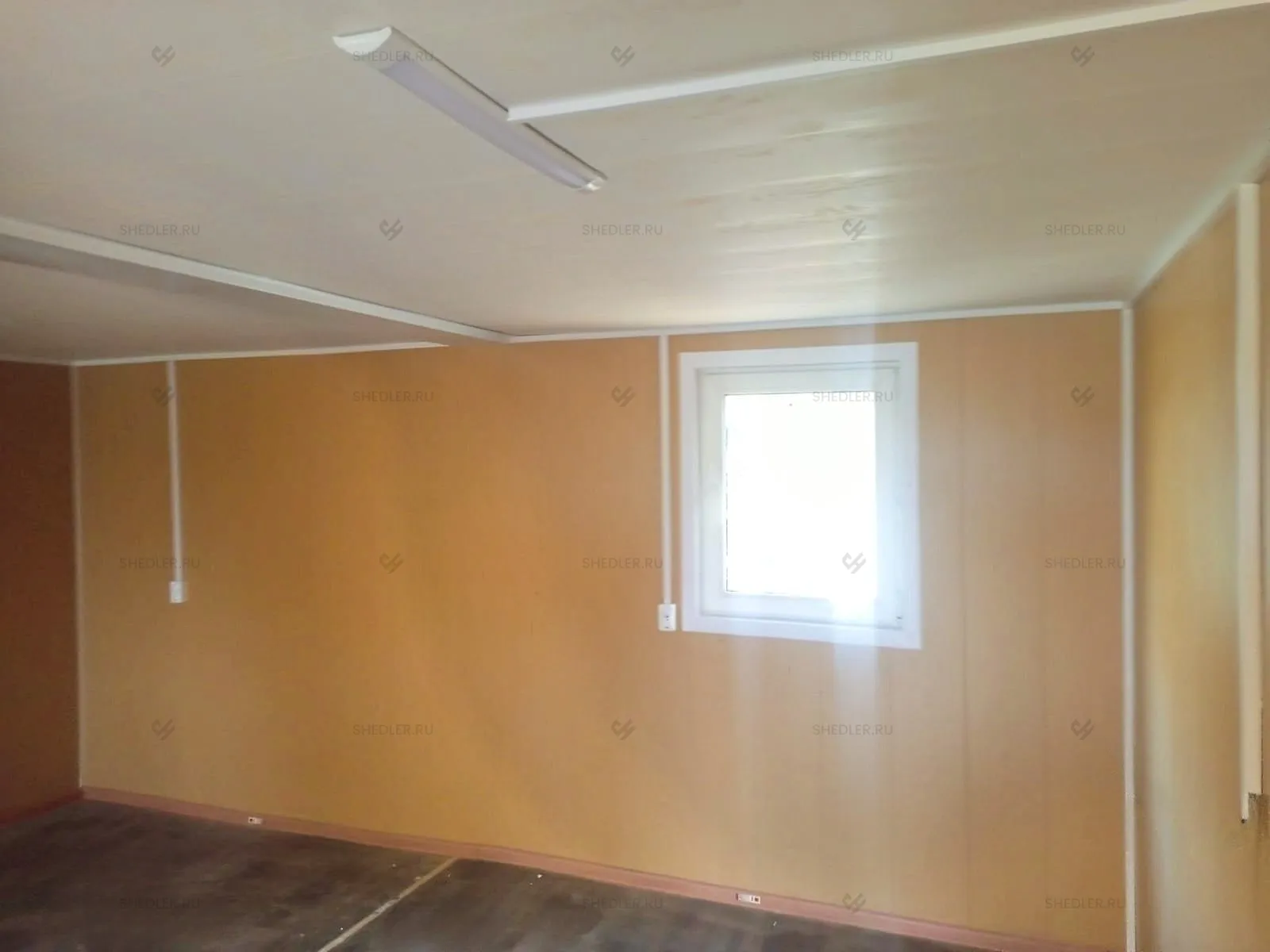 В модульном здании поворотно-откидные окна из ПВХ и входная металлическая утепленная дверь.