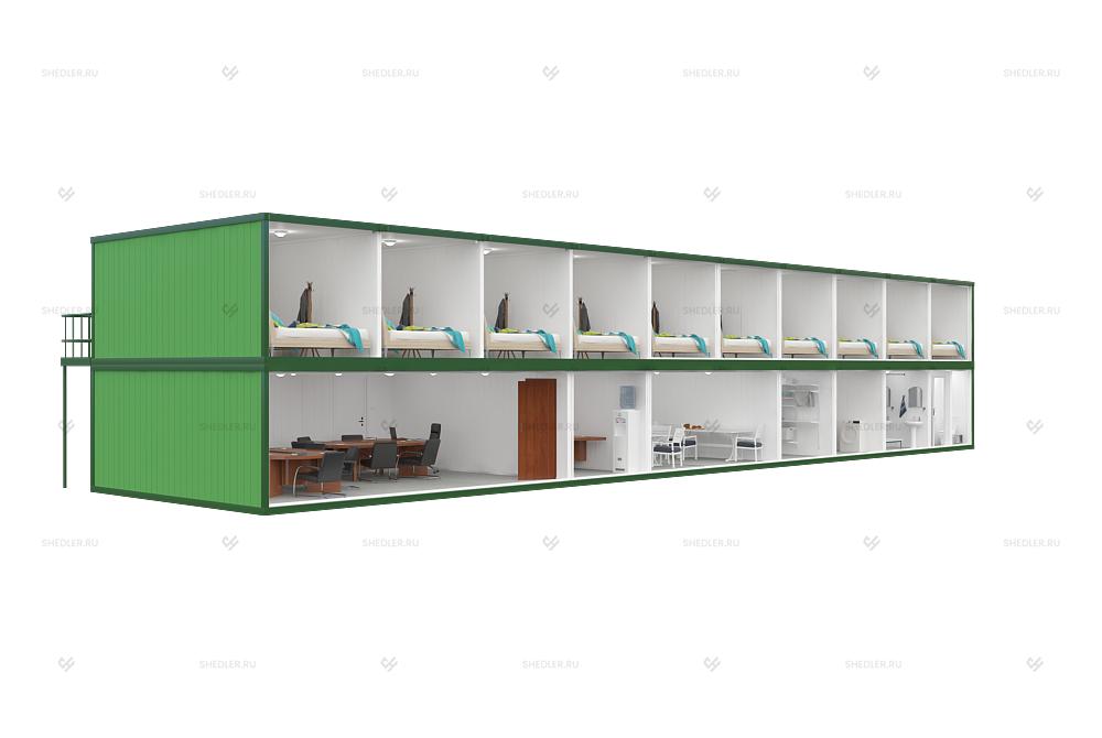 Двухэтажный блок-модуль SHEDLER – это быстровозводимое здание, универсального назначения, которое состоит из 20 блок-контейнеров. Оно может использоваться в коммерческих и административных целях. Двухуровневая конструкция обеспечивает высокую вместимость и способность установки на ограниченном пространстве.