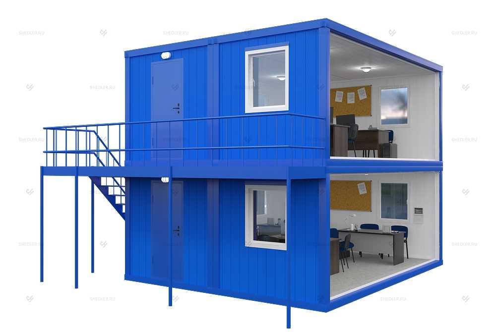 Блок-модуль БМ-15 SHEDLER – это двухэтажное здание блочно-модульного типа, состоящее из 4 блок-контейнеров. Может использоваться, как жилой дом, административное или офисное здание. Считается полноценной альтернативой капитальным объектам аналогичного типа.