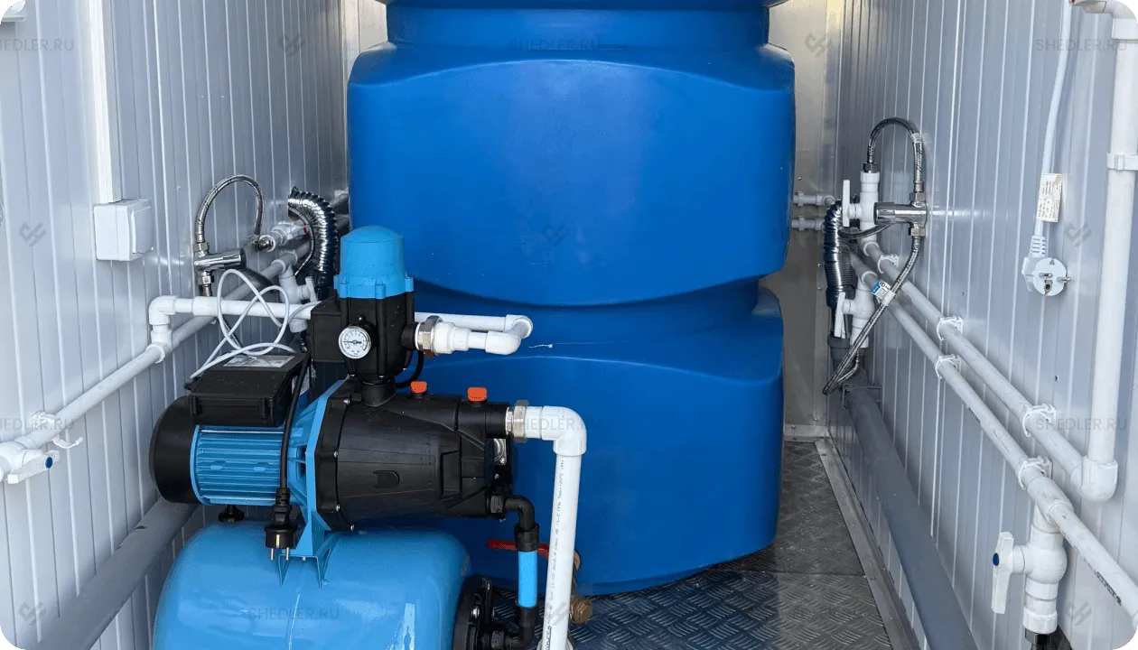 Гибкость подключения: к центральным коммуникациям или полностью автономно с использованием встроенных емкостей для воды и отходов. Работает от стандартной сети 220В.