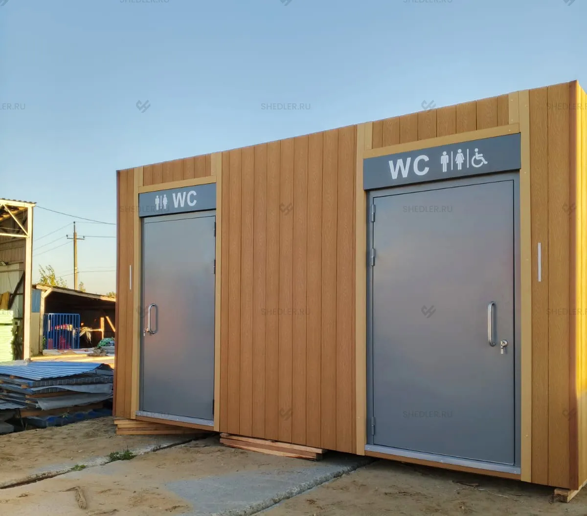 Компания Шедлер выполнила еще один проект по быстровозводимым сооружениям. В этот раз заказчик из Москвы заинтересовался автономным модульным туалетом на 2 кабинки.