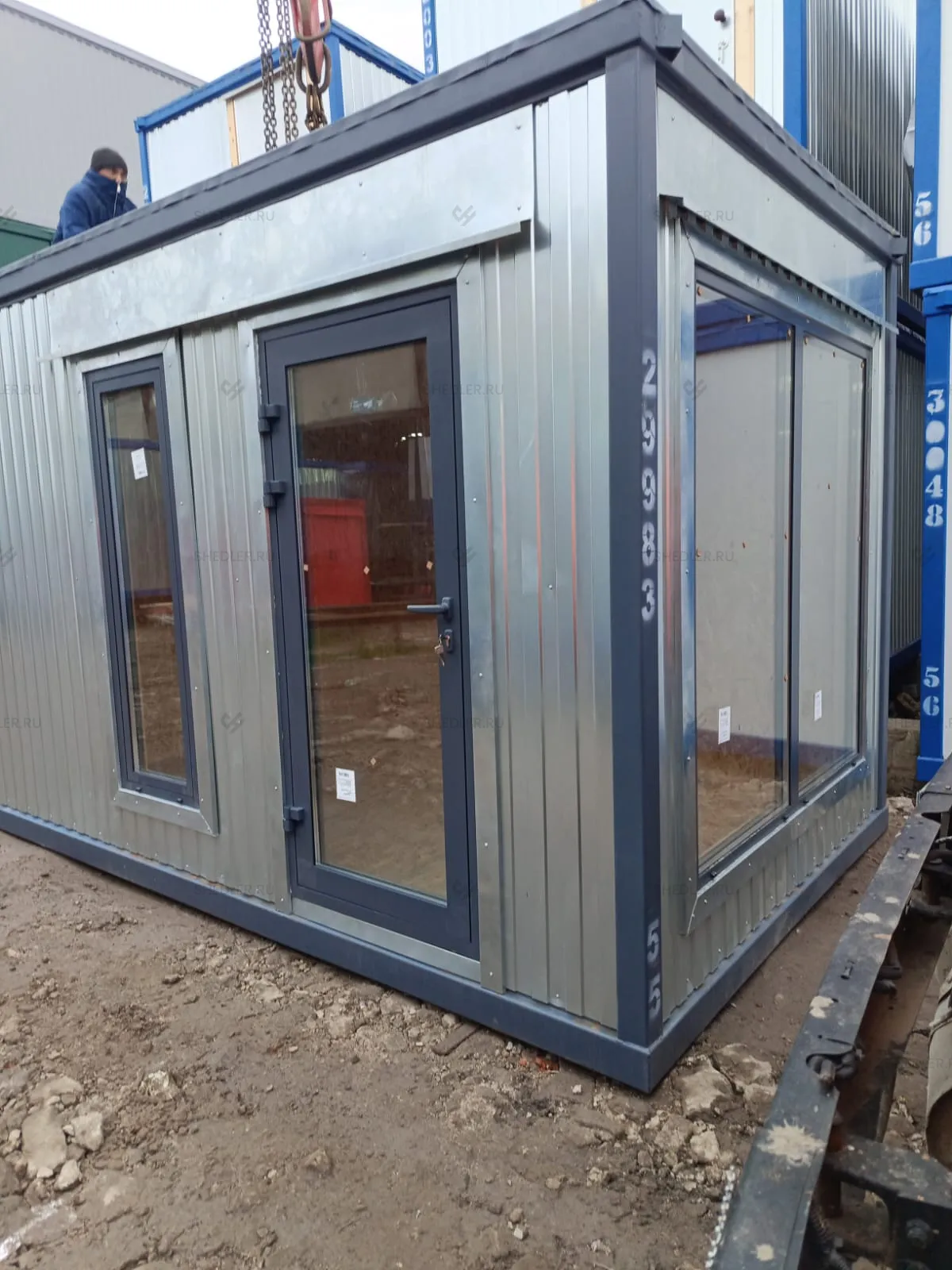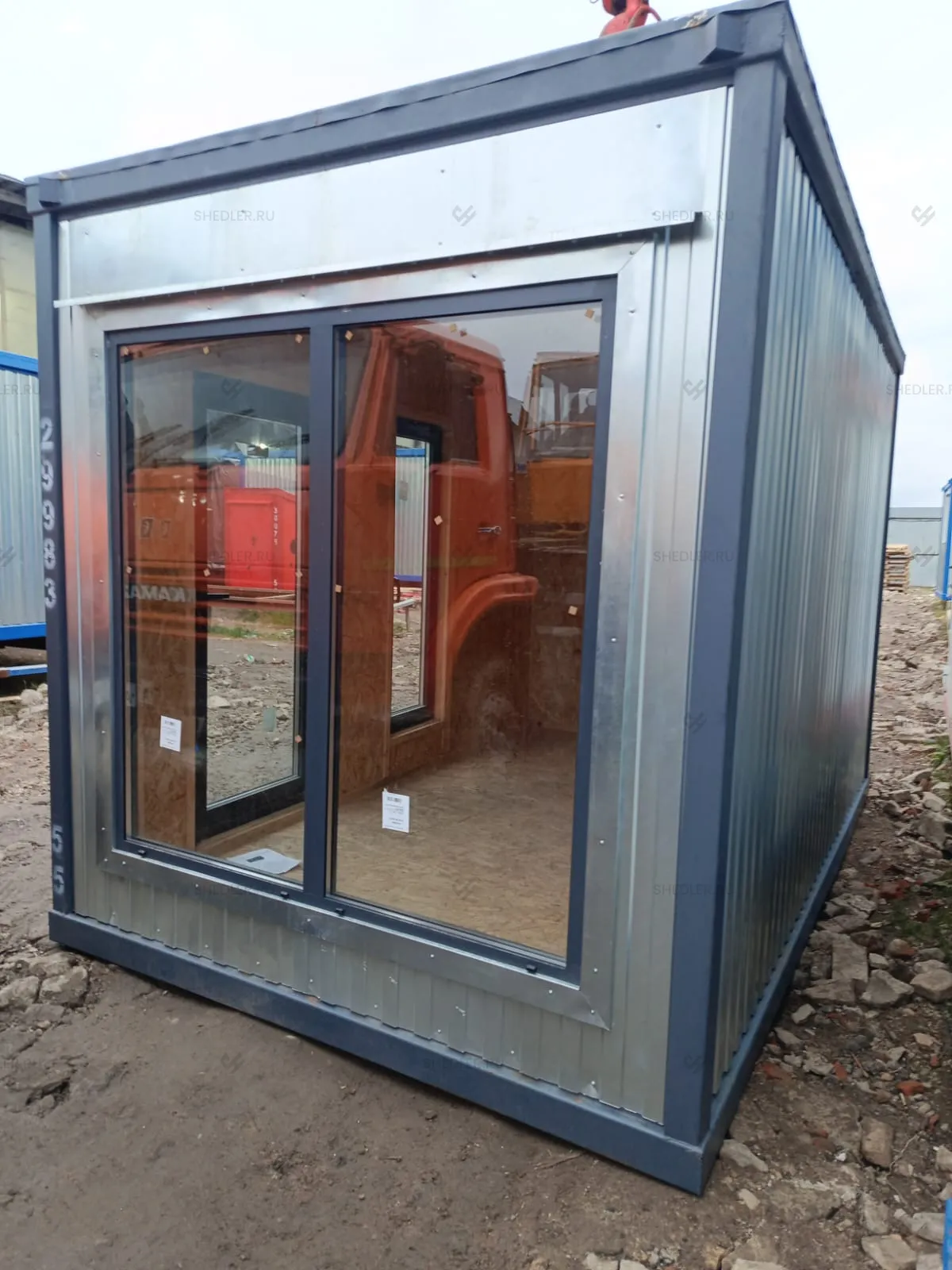 Компактный и в тоже время вместительный модуль с большими окнами-витринами мы произвели для заказчика из Зеленограда. Компания Шедлер взяла за основу блок-контейнер БК-00 и с учетом пожеланий клиента приступила к работе.