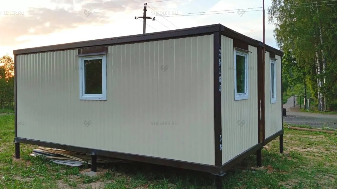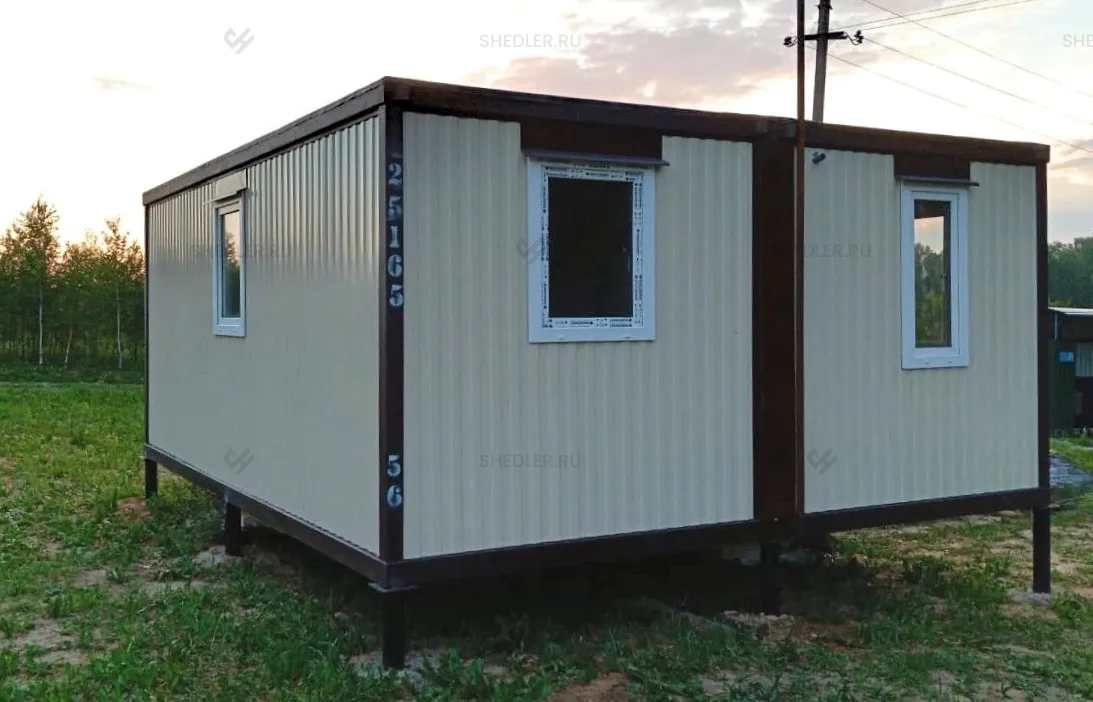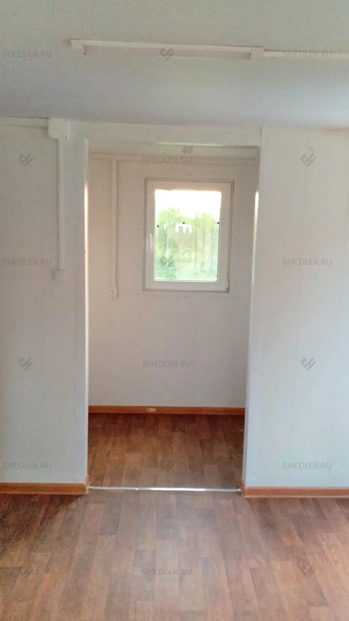 Здание оборудовано входной дверью из металла, обшитого внутри дермантином. Помещение полностью готово к проживанию. Монтаж осуществлён на 9 сваях.