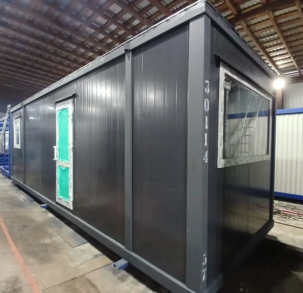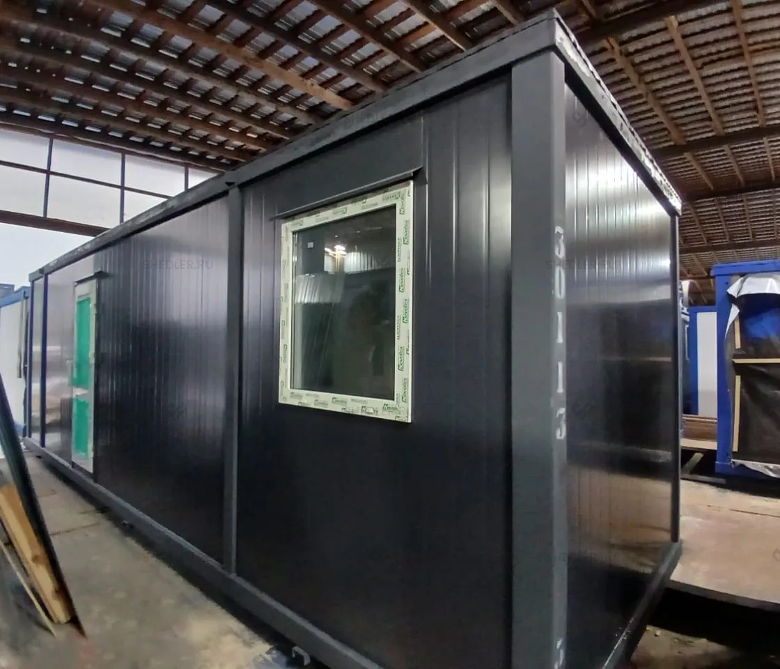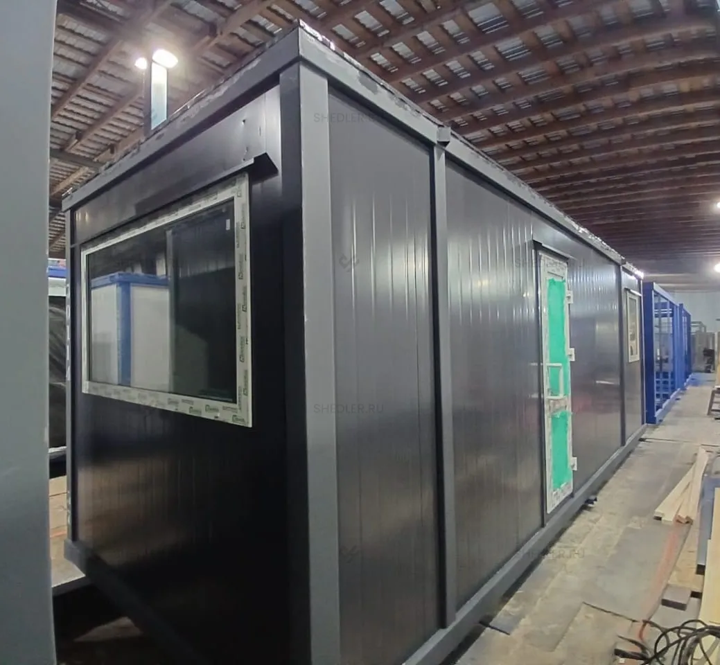 Очередной проект был реализован компанией Шедлер. Заказчик из Москвы попросил сделать универсальную модульную проходную. Конструкция была реализована из блок-контейнеров, оснащена всем необходимым и доставлена заказчику.