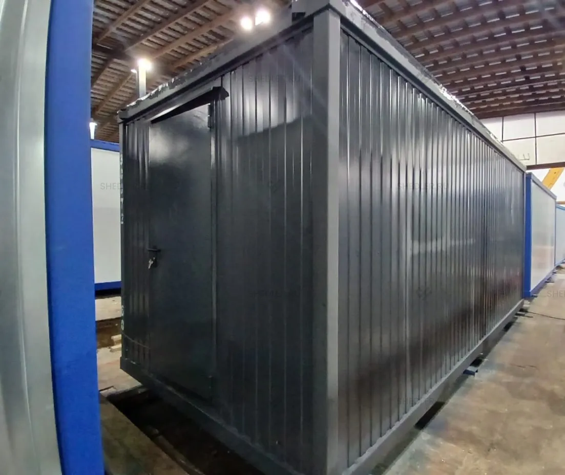 Экстерьер блочно- модульного сооружения – это односкатная крыша из швеллера 15 см и листового железа 0,7 мм, а также фасад из трехслойных сэндвич-панелей Базальт 100 мм с порошковым покрытием RAL 7024.