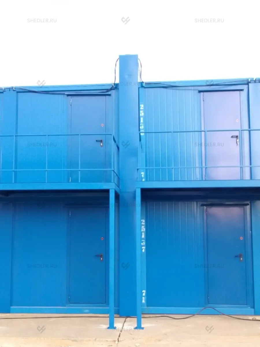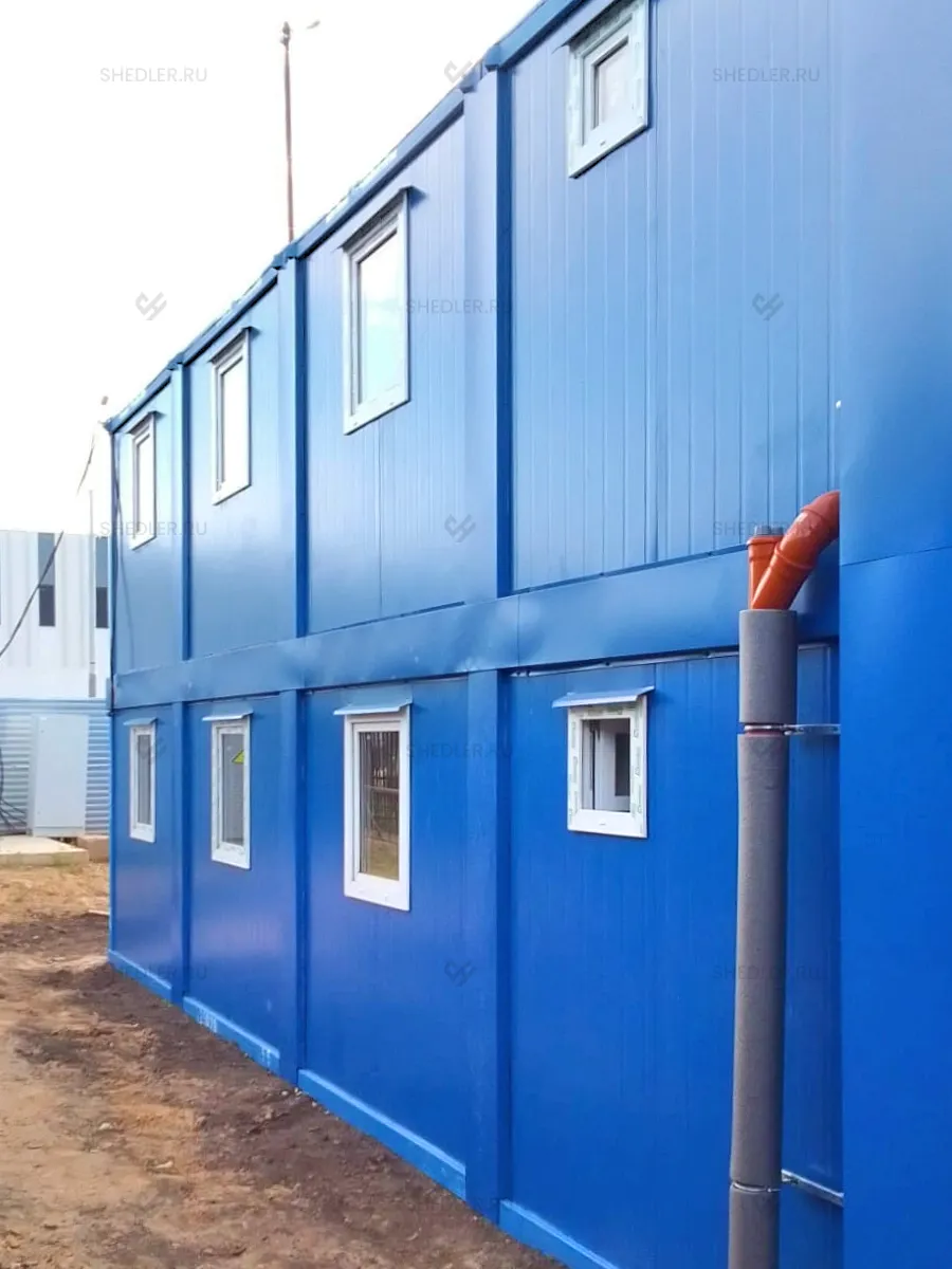 Реализовали проект двухэтажного общежития SHEDLER со всеми удобствами. Для целей заказчика подошло модульное здание из 16 блок-контейнеров БКСП-00 установленных один на другой.