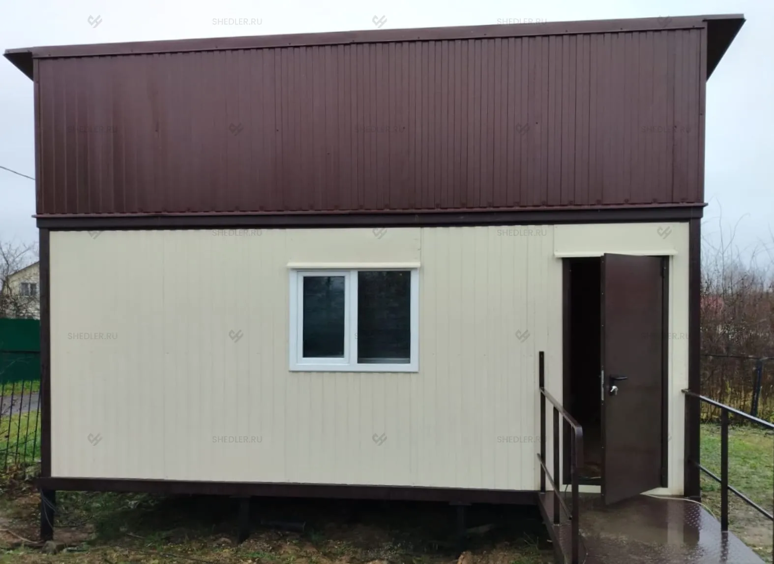 Модульное здание из двух БК-00 компания Шедлер произвела за 5 дней, собственными силами доставила на участок СНТ «Монолит» и выполнила монтаж. Все договоренности были соблюдены – заказчик остался доволен.