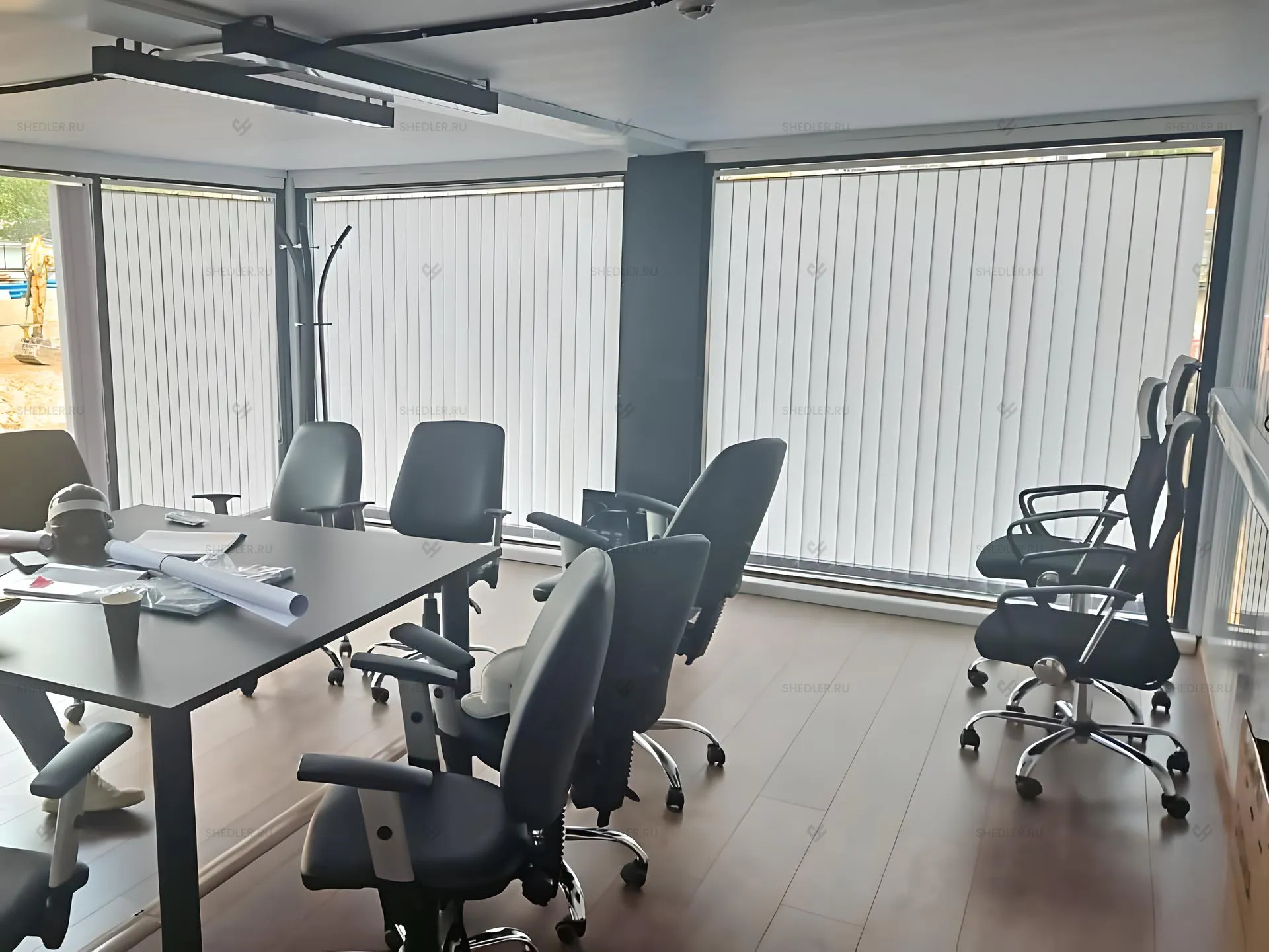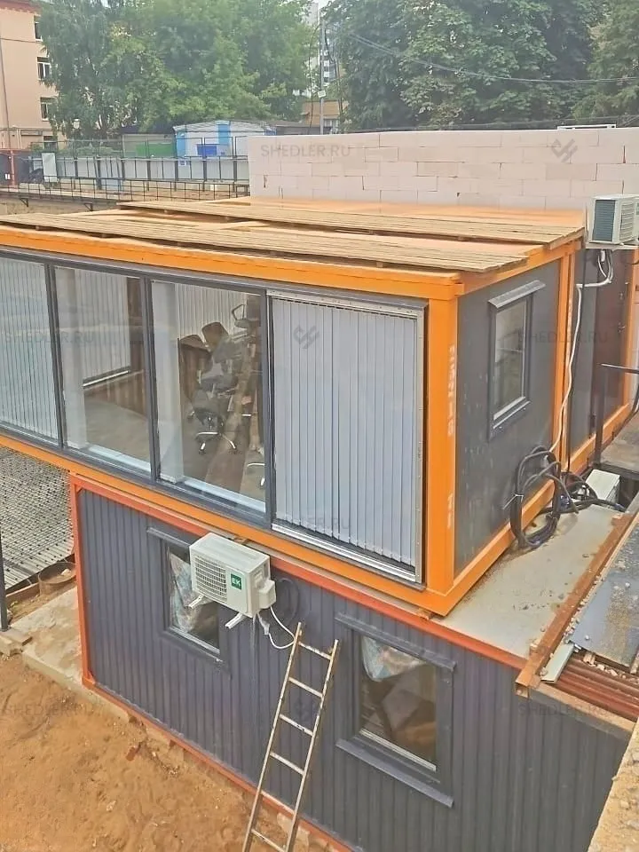 У модульного офиса SHEDLER плоская крыша, для производства которой использовался металлический сварной лист 0,7 мм. У кровли серый цвет RAL 7024.