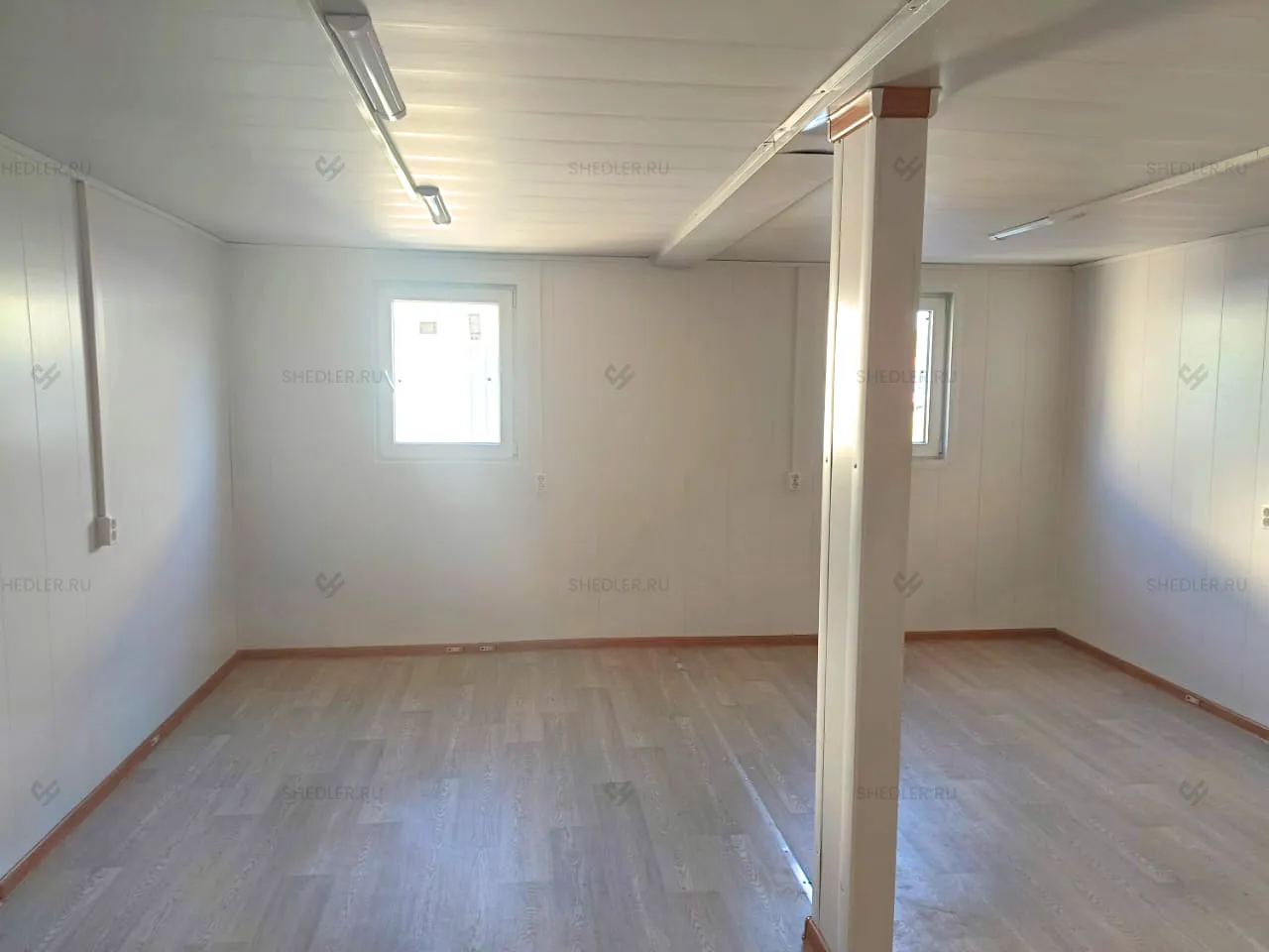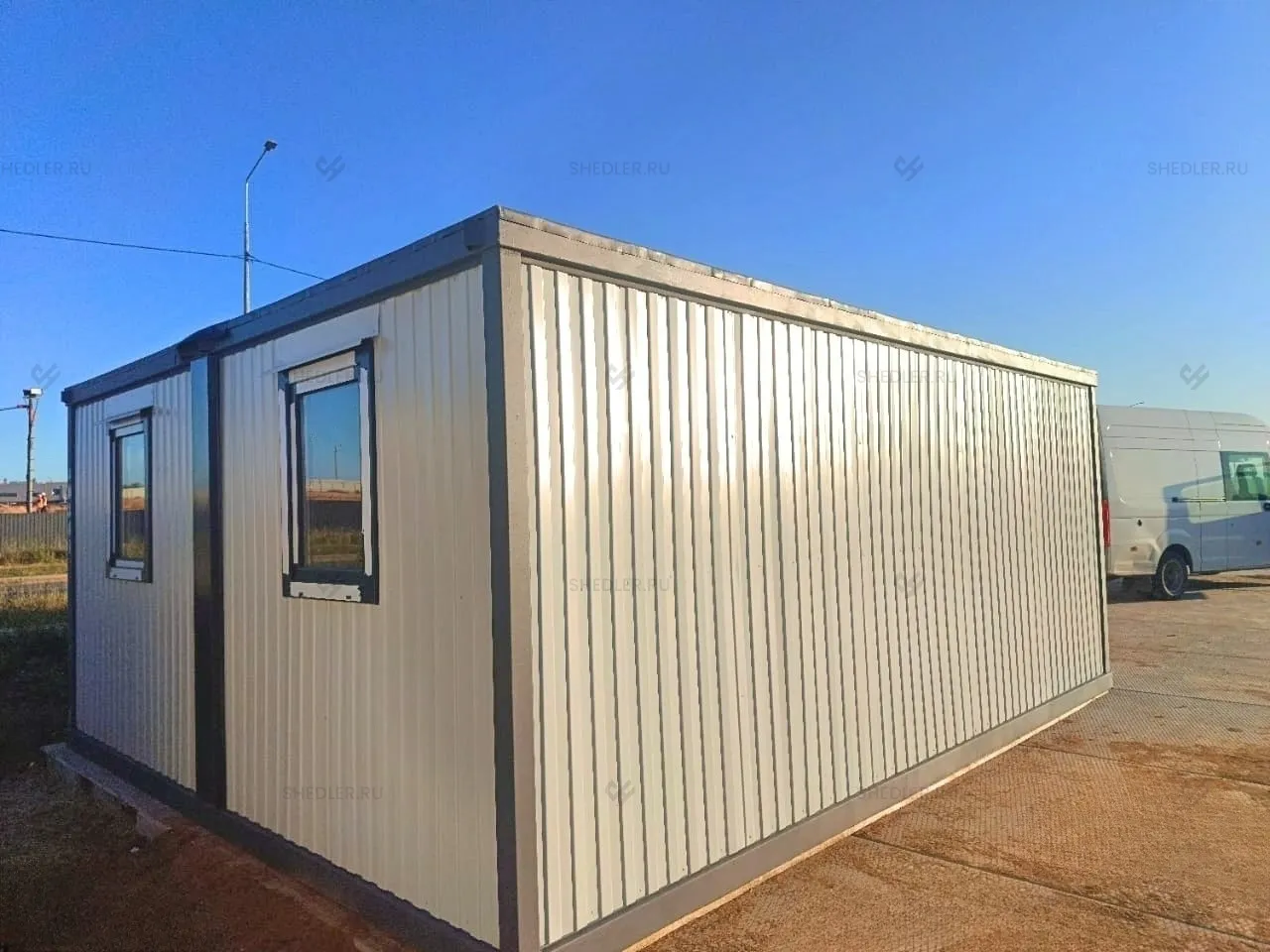 Идеальным вариантом стало здание из 2-х блок-контейнеров размером 5,85 х 4,9 м общей площадью 28,66 м.
