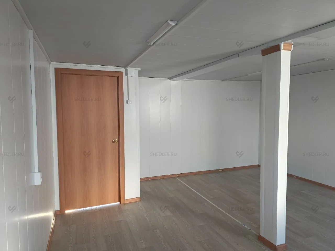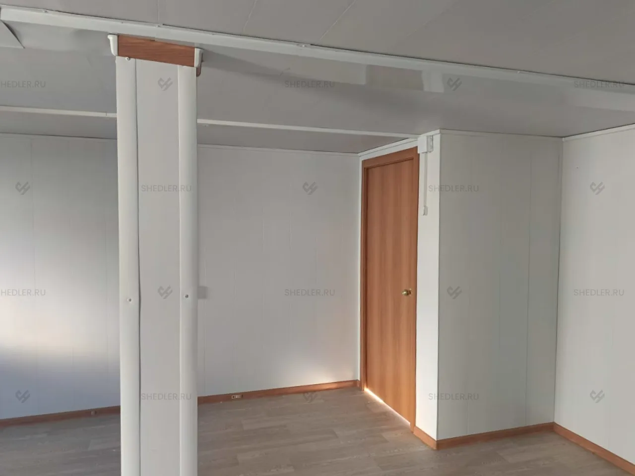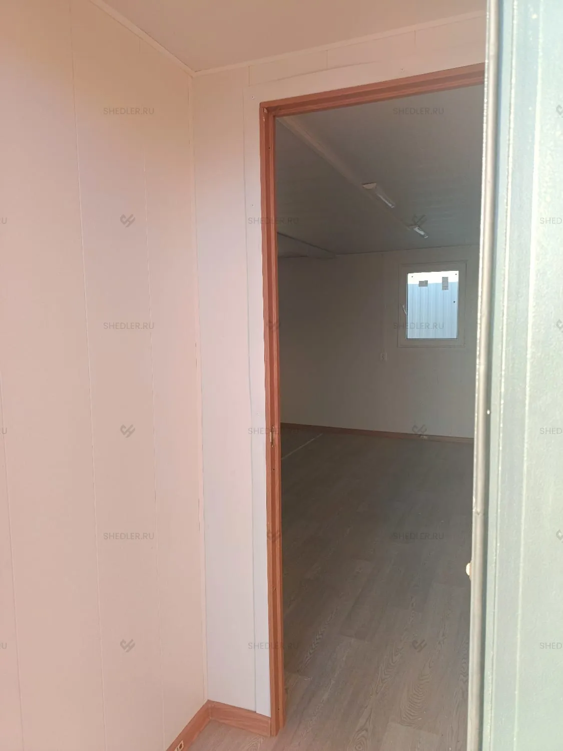 Дополнительно здание было оснащено тамбуром с использованием каркасной перегородки без утепления из МДФ и двери размером 0,8 х 2 м.